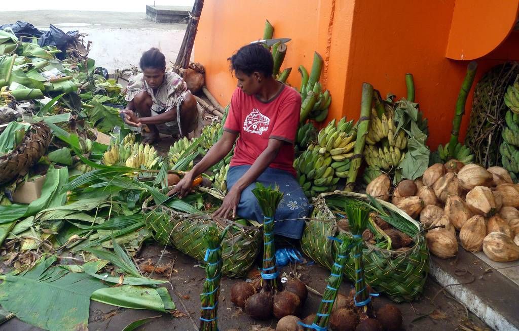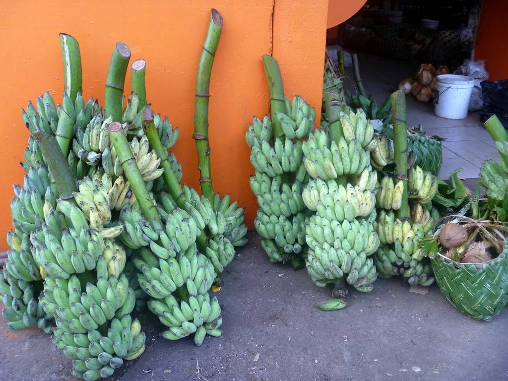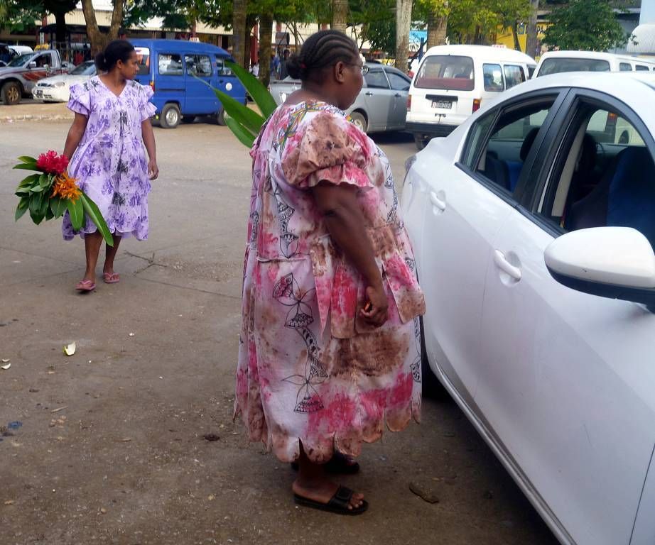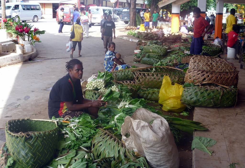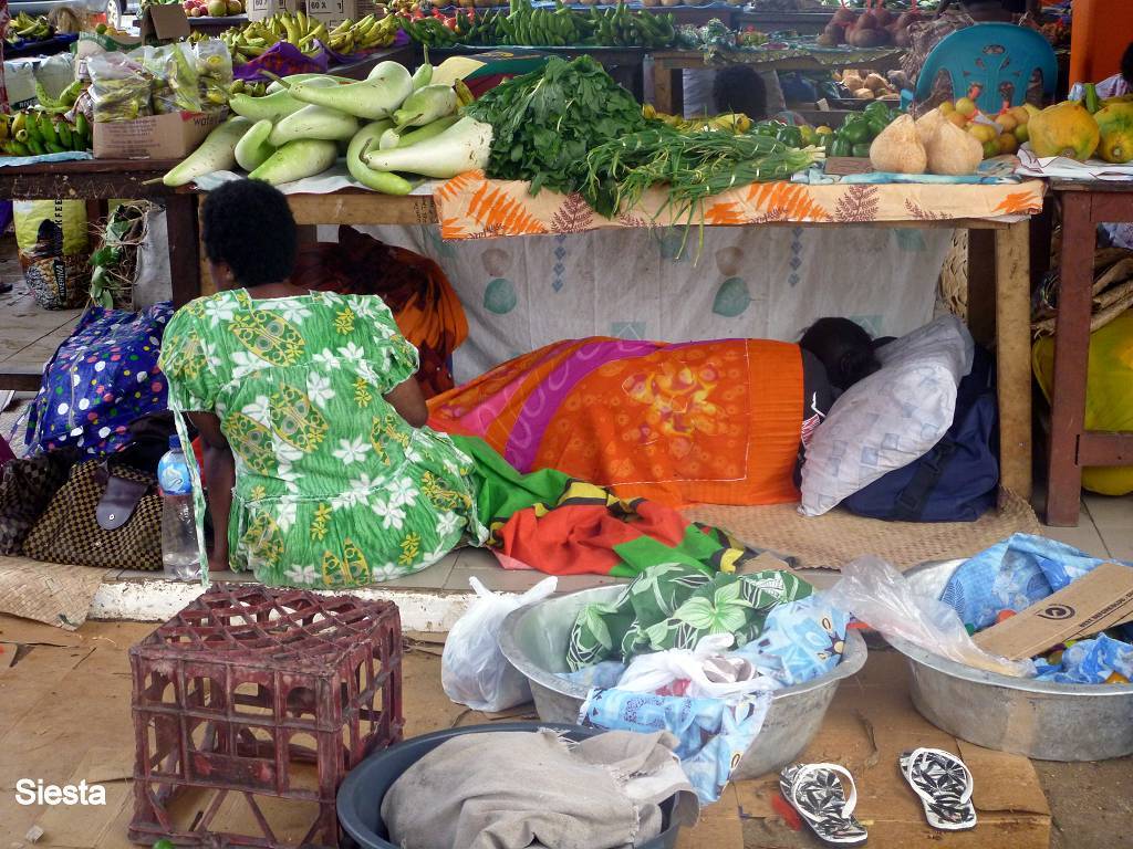 Wir waschen Wäsche, es regnet eine kurze Schütte und gegen Mittag sind wir wieder in der Markthalle. Da gibt es immer sehr viel Interessantes zu sehen. Auch jetzt schüttet es wieder und wir mussten in die Halle flüchten. Das Mittagessen besteht heute aus Reis (auch für Paul), Beef Steak für Paul, für mich Chicken und für beide viel verschiedenes gedämpftes Gemüse. Sehr gut für 400 Vatu. Es regnet in Strömen und wir spurten über die Strasse zur französischen Patisserie. Ich bekomme Kaffee und Tarte Framboise (Himbeerkuchen) und Paul 2 Kugeln Glacé in einem Glas.