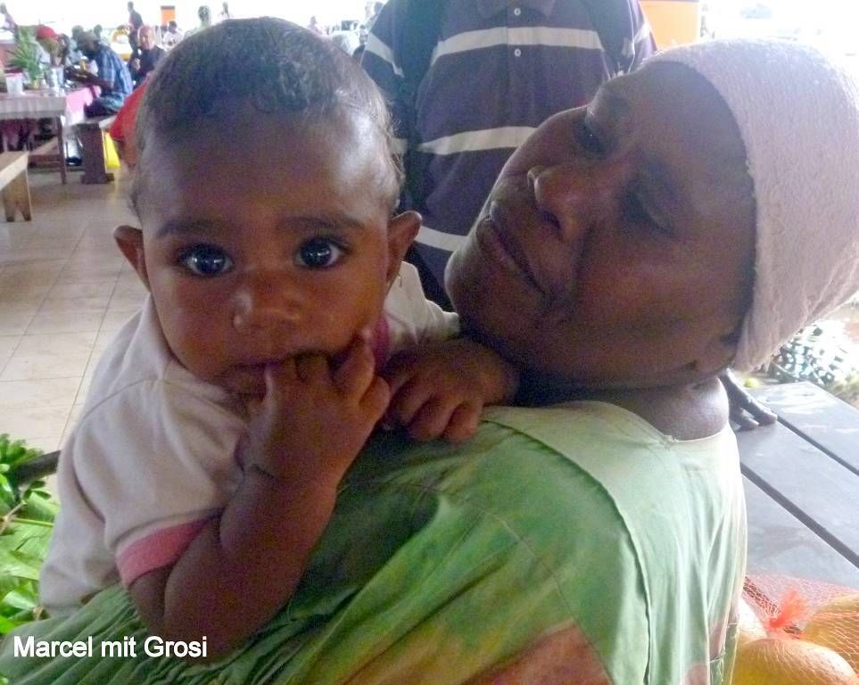 Wir suchen zuerst einen Geldautomaten, wo wir Vatu's beziehen können. Danach sind wir im Immigrationbüro, um zu erfahren, dass wir um 13h30 wiederkommen sollen, jetzt sei geschlossen (es ist kurz vor 12h). Wir laufen ein wenig herum und schauen uns das Treiben hier an. Es gibt wohl kaum einen grösseren Gegensatz als der, zwischen dem Dörfchen Port Resolution auf der Insel Tanna mit den freundlichen Menschen in ihren Strohhütten, und dieser Hauptstadt, Port Vila. Es wimmelt von Autos, vor allem Minibussen und es hat unendlich viele Dutyfree-Shops und Restaurants.