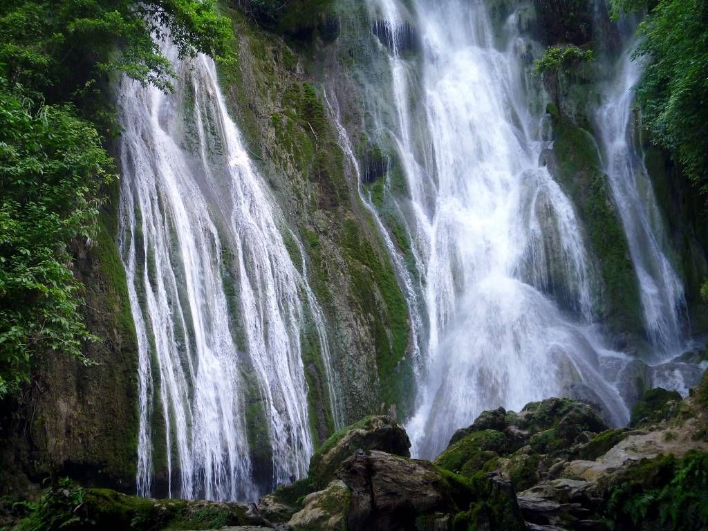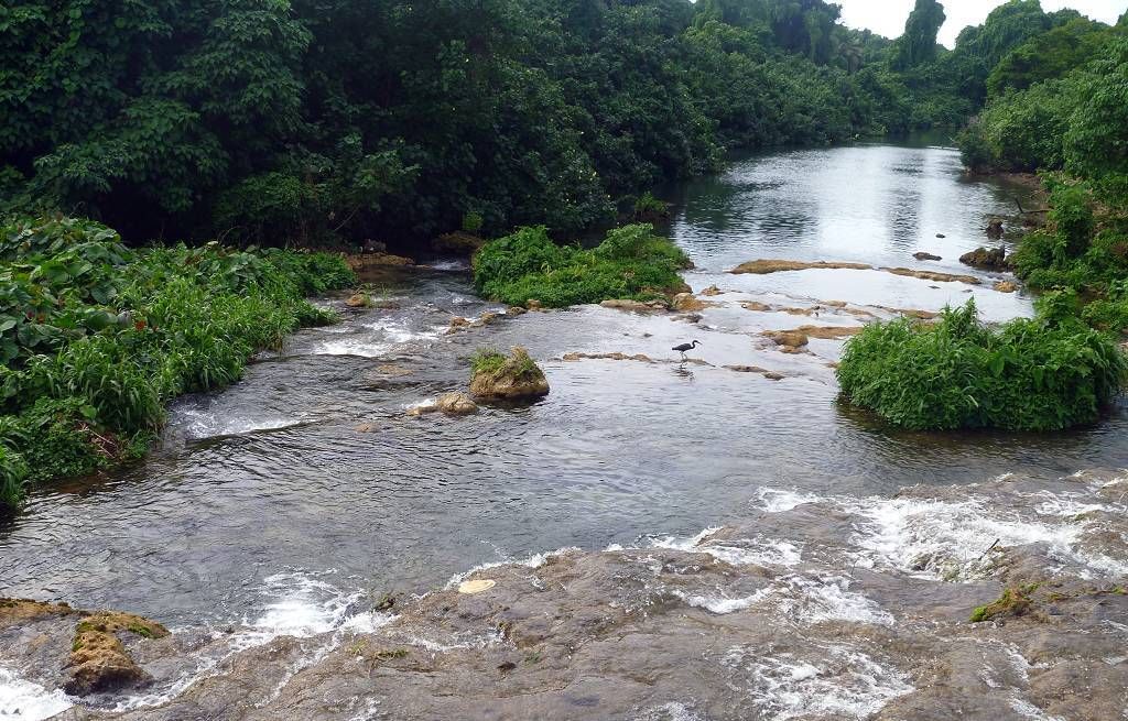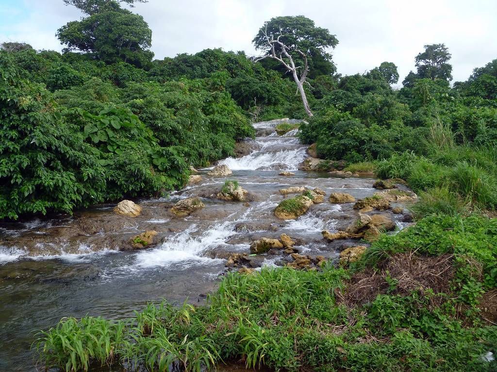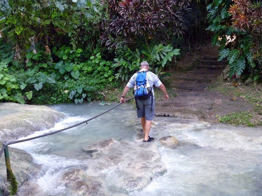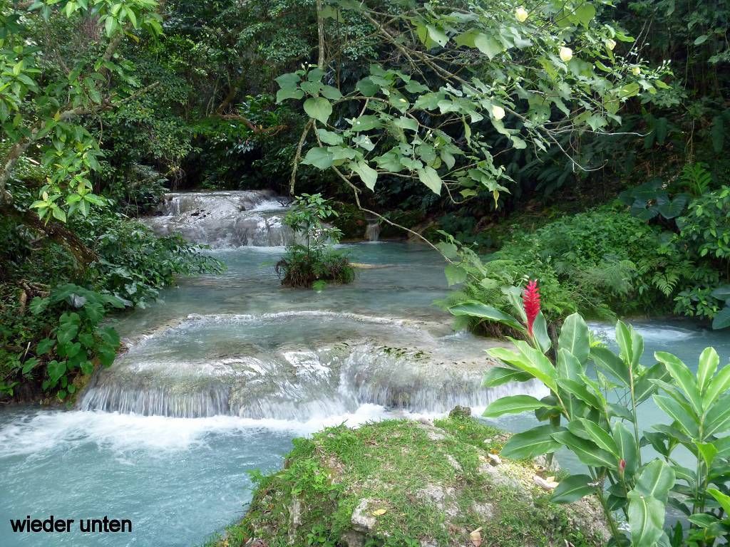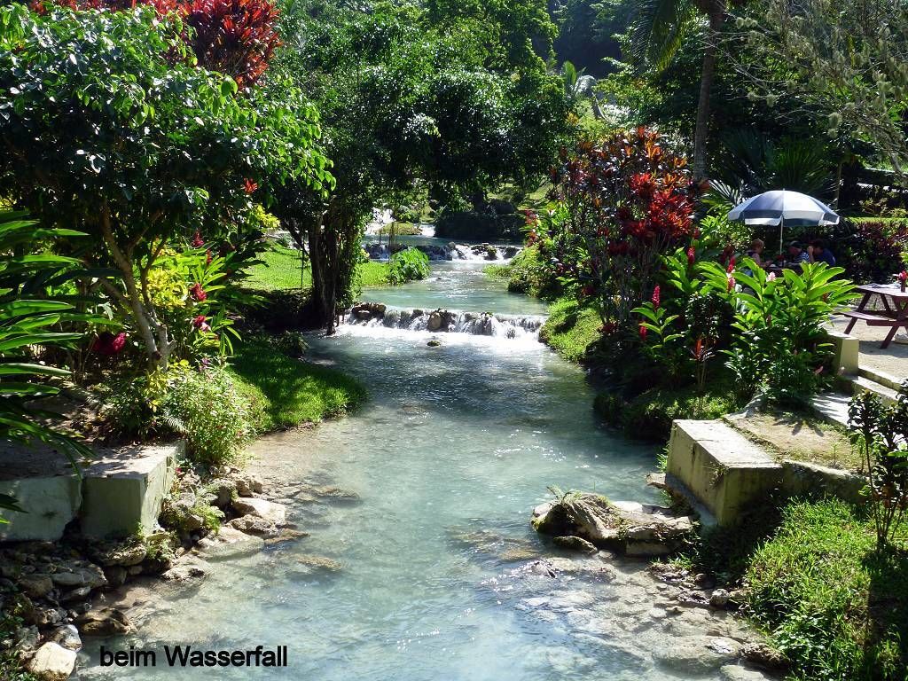 Nach dem Essen machen wir uns auf den Weg zum Wasserfall. Der Weg dauert etwa 20 Minuten und ist sehr schön angelegt. Zuoberst stürzt sich das Wasser in verschiedenen Fällen 20m in die Tiefe und wer will, kann sich darunter setzen. Das Wasser fliesst von Pool zu Pool und überall, wo man will, kann man sich hineinsetzen und baden. Einfach wunderschön und wir geniessen das Bad im kühlen Wasser. Nachdem wir wieder unten sind, baden wir nochmals in einem schönen Pool und lassen uns dann an der Sonne trocknen. Jetzt finden wir die 15'000 Vatu (15 SFr.) pro Person Eintritt nicht mehr zu viel. Alles ist sehr sauber und gut gemacht. Herrlich war's!