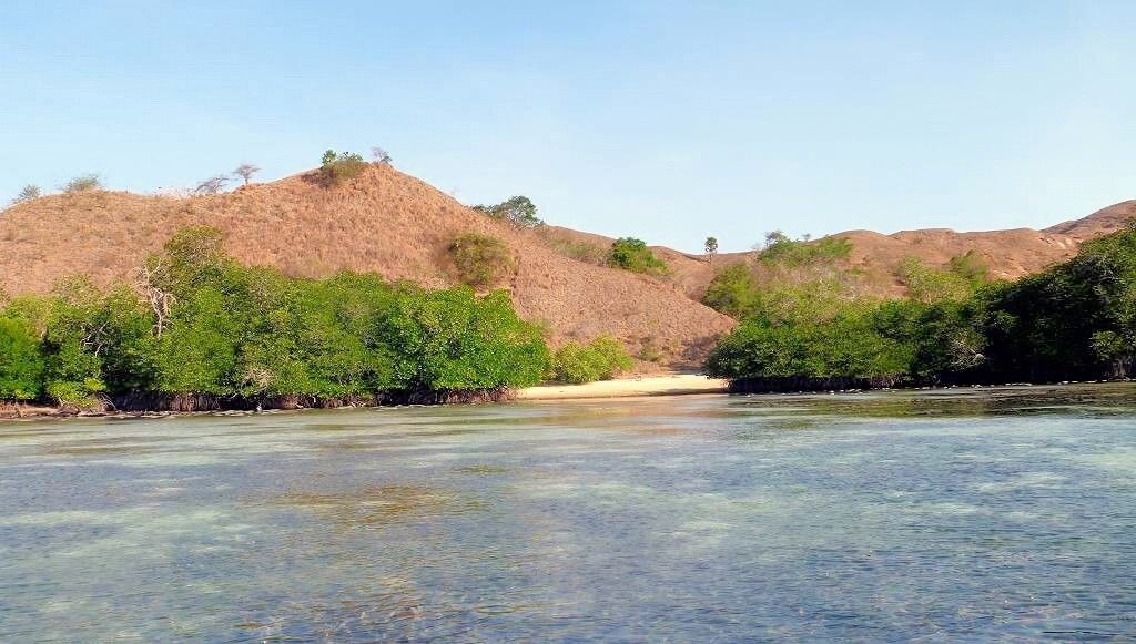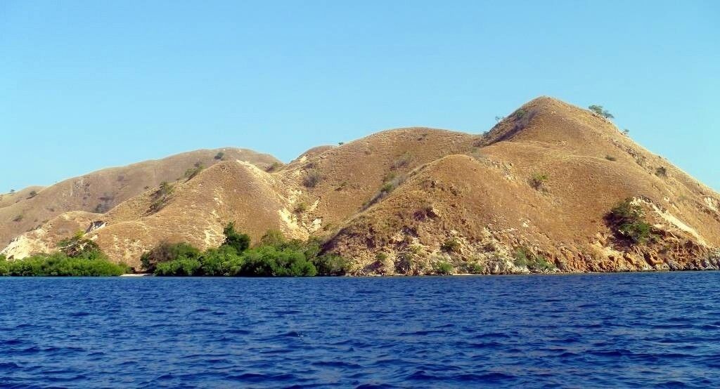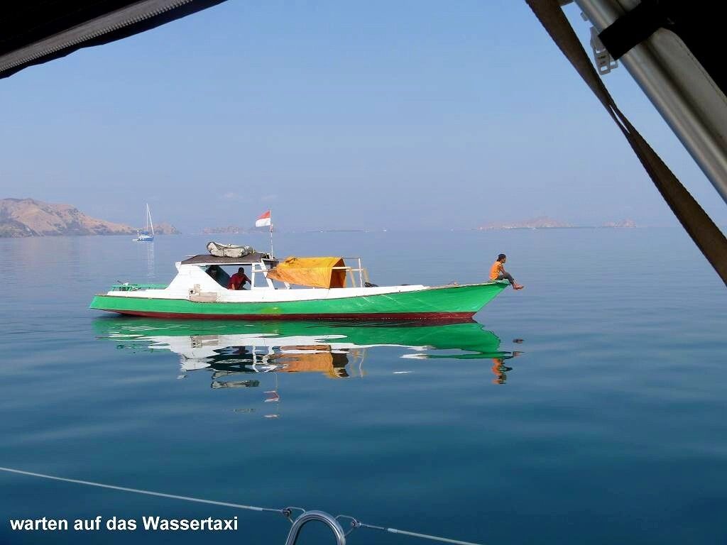 Wir fahren zwischen -zig kleinen und grösseren Inseln hindurch. Kein Wunder kommen die Indonesier auf ihre 17'000 oder mehr Inseln. Um 11h30 ankern wir auf der Insel Rinca (gesprochen Rintscha), wo die berühmten Komodo-Warane leben, in einer wunderschönen Bucht.