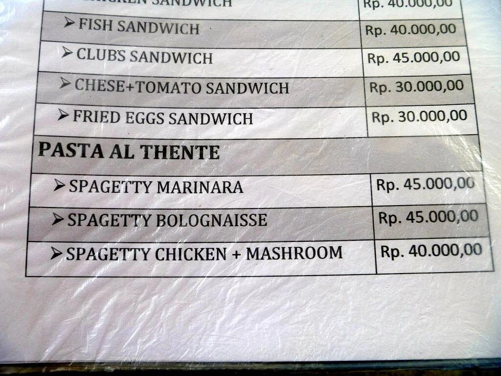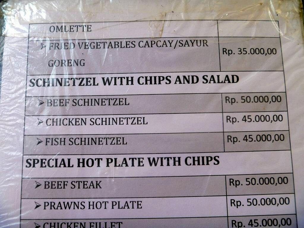 Ich bekomme unterwegs einen grösseren Rucksack, für grössere Unternehmungen. Auf dem Markt kaufen wir lauter gesundes Zeug wie: Ananas, Papaya, Mangos und 2½ kg Rüebli. Im Restaurant Treetop essen wir auf der Terrasse mit Blick aufs Meer zu Mittag. Es ist sehr schön hier oben. Aber sonst ist der Ort eine einzige Müllhalde. Überall Dreck, Dreck, Dreck! Schade, dies ist der schmutzigste Ort seit wir in Indonesien sind! Um 16h15 sind wir alle wieder wohlbehalten auf den Schiffen zurück. Paul gibt den zwei Burschen auf dem Boot unsere vier Dieselkanister und zwei Benzinkanister mit. Sie wollen sie morgen gefüllt wieder bringen.