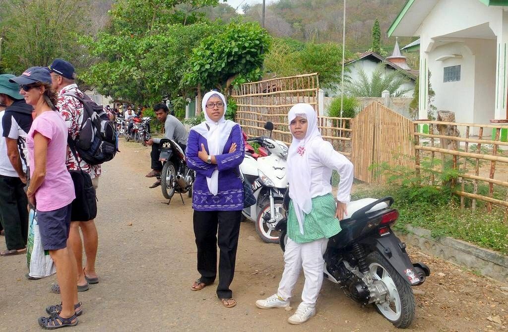 Um 10h fahren wir mit einem von den Booten (Ian hat das ausgemacht) mit Andrea und Jim (Island Prism) und Angela und Ian (Sea Eagle II) nach Labuan Bajo. Dies ist der nordwestlichste Ort der Insel Flores. Wir schlendern durch das sehr lange Strassendorf. Zuerst rechts zum Supermarkt und später links zum Früchte und Gemüsemarkt. Wir holen noch bei der Bank Geld aus dem Automaten.