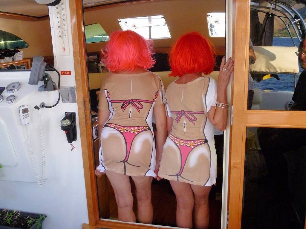 Um 17h30 sind wir zurück auf der MABUHAY. Spontan pfeifen wir zur „Island Prism“ hinüber, Andrea und Jim sollen auf ein Bier zu uns kommen. Und das machen sie auch. Andrea heisst England und kommt aus England, war aber Lehrerin in Neuseeland. Jim kommt aus Vancouver Island, Kanada. Kurze Zeit später kommen noch die Australier von der „Persian Sands“ dazu und jetzt wird es lustig. Penny und Dorne haben beide knallblonde Perücken an und ganz spezielle T-Shirts. Sie sehen umwerfend aus! Wir trinken ein paar mehr als ein Bier und werden dann spontan auf die „Island Prism“ zum Abendessen eingeladen. Also verlegt sich die ganze Bande 30 m weiter auf das kanadische 36-Fuss-Schiff. Es gibt Nudeln, Reis, gemischtes Gemüse mit Tofu und es wird ein sehr gemütlicher Abend. Paul fängt an, mit Peter und Jim auf Englisch zu fachsimpeln......Gegen 23 h sind wir zu Hause. Es weht die ganze Nacht ein heftiger Wind mit etwa 20-25 Knoten.