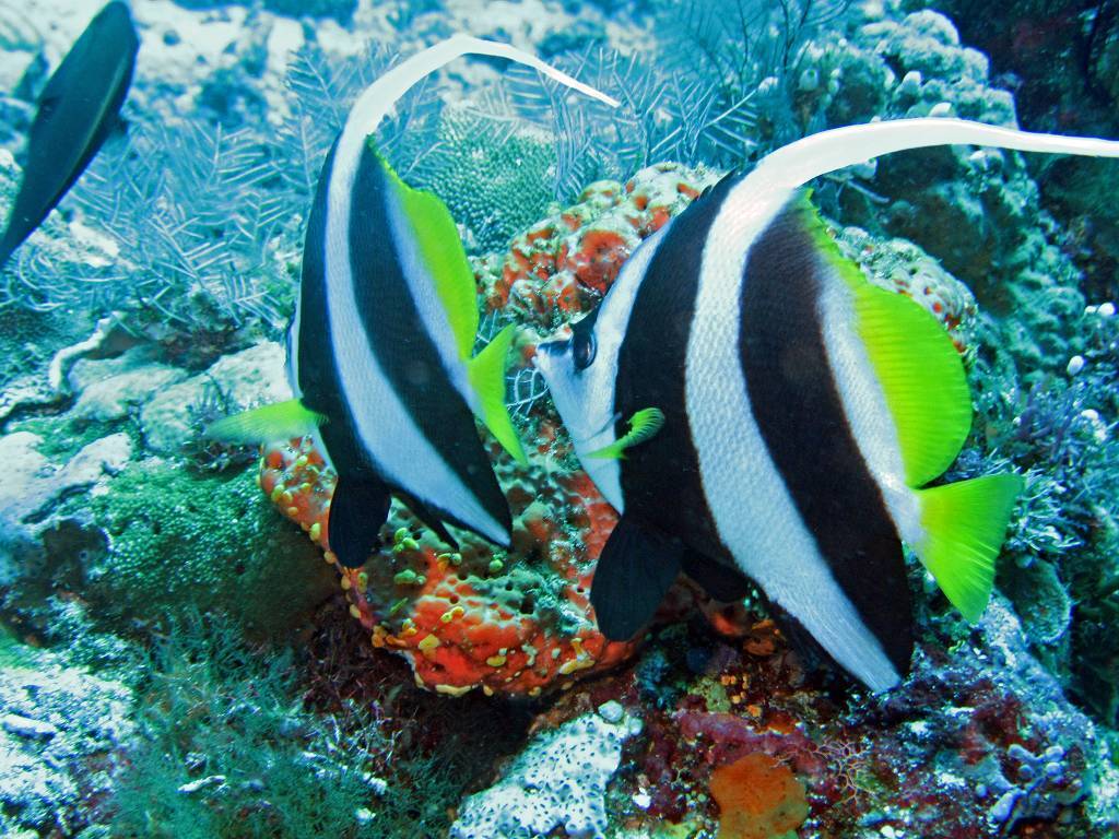 Nach dem späten Mittagessen mache ich ein Brot und einen Liter Salatsauce. Um 16h fahren wir mit Soni und Werner von der „FEE“, in zwei Dinghys, zu einer Passage zwischen zwei Inseln. Dort lassen wir uns durch die Passage treiben, das Dinghy im Schlepp. Die Strömung ist so stark, dass wir „wusch!“ schon durch sind! Das machen wir vier mal und sehen dabei 4 oder 5 Haie und ganz, ganz viele tolle Fische im schönen Riff. Irre schön!