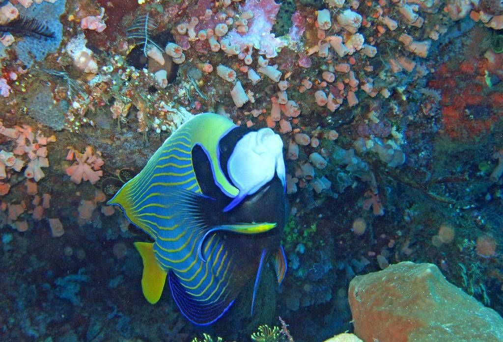 Von 13h bis 14h haben wir Schnorchelstunde. Direkt hier in dieser schönen Bucht. Das Wasser ist blau, blau, blau. Blauer geht gar nicht. Es ist wunderschön! Danach relaxen und lesen wir. Ich bereite Fotos für den Wakatobi-Bericht vor. Neben der MABUHAY schwimmt eine schöne grosse Schildkröte herum. Und am Abend sieht Paul einen Mantarochen vorbeischwimmen. Ich sehe ihn leider nicht, da ich am kochen bin. Ein grosses Tauchboot driftet auf uns zu und rammt uns fast. Die Männer der Crew sagen dazu nur: no problem!