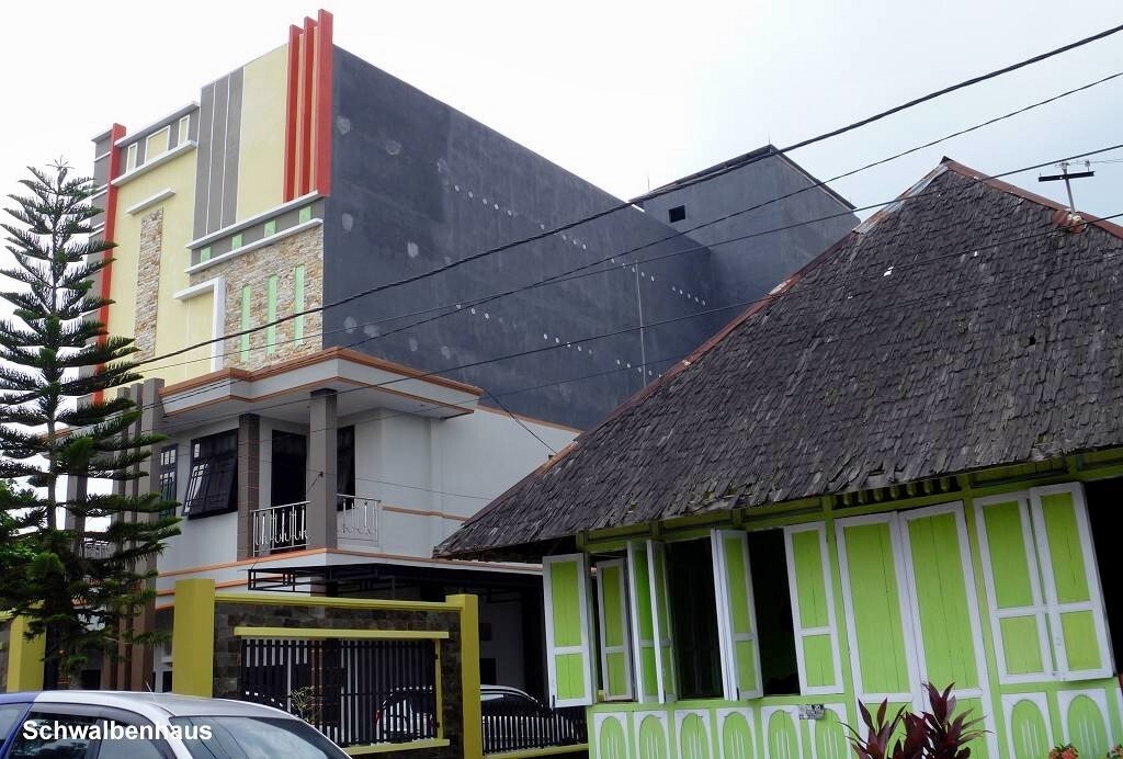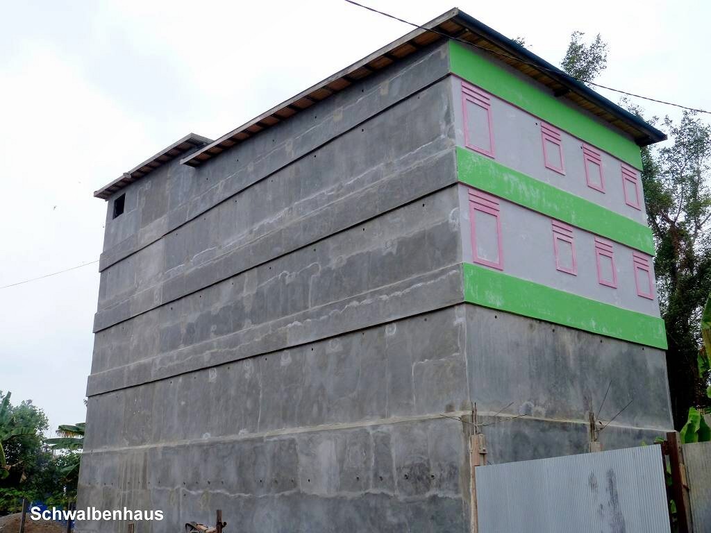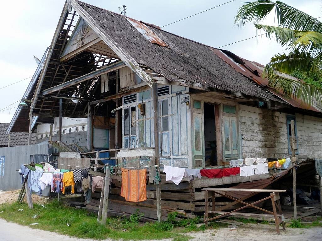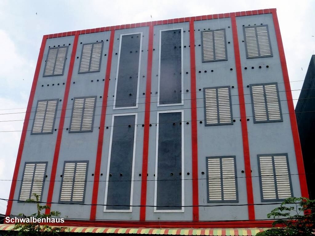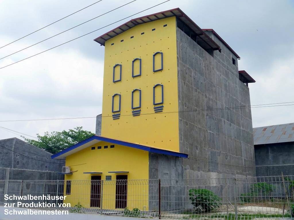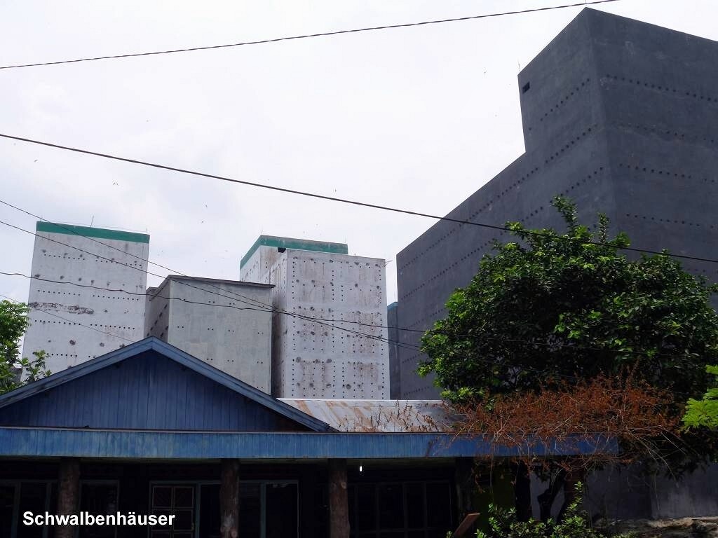 Kumai ist nicht wirklich ein schöner Ort. Es hat viele hohe Betongebäude, die aussehen wie Bunker. Sie haben keine Fenster, höchstens ein paar aufgemalte. Wir fragen den Chauffeur, was da drin gelagert wird. Die Antwort überrascht uns ziemlich: Schwalben sind da drin. Die produzieren die heiss begehrten Schwalbennester für die Chinesen, die daraus Suppe kochen. Aha! Und wirklich hört man bis über den Fluss das Gekreische von Vögeln.