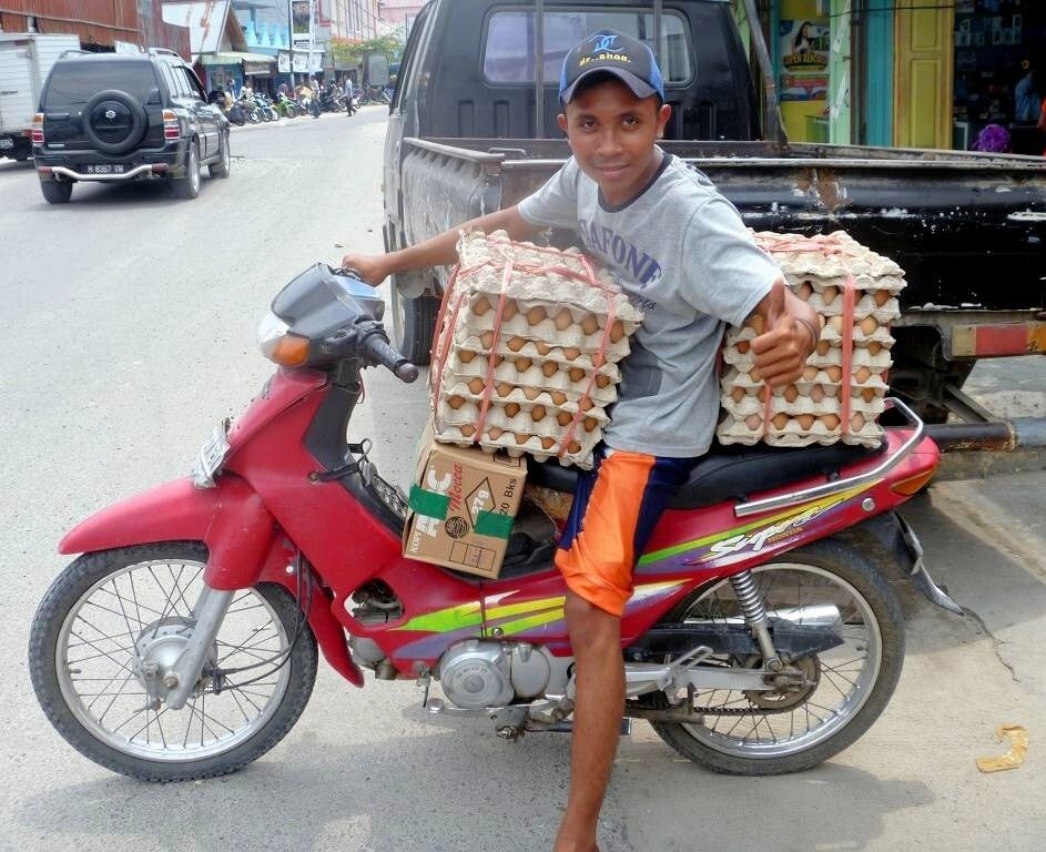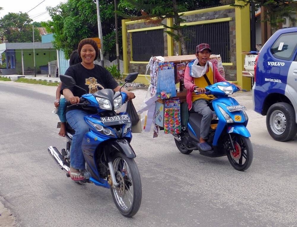 Um 7h30 steht Swen von der „Solar Planet“ an unserer Reling. Er hat ein Motorenproblem und braucht den Mechaniker. Gegen 8h, nach unserem Frühstück geht Paul und behebt den Schaden. Das dauert, mit vermutlich vielen Theorien, gute 1½ Stunden. Danach wollen Paul und ich in die Stadt. Zufällig sind auch Swen und Kathrin am Steg und so nehmen wir zusammen ein Auto, das uns drei Stunden lang, mit Fahrer, zur Verfügung steht. Wir fahren in die nächst grössere Stadt Pangkalanbun, die 15 km entfernt ist. Wir kaufen eine externe Festplatte für mich, weil ich keinen Platz mehr für Fotos habe!!!!