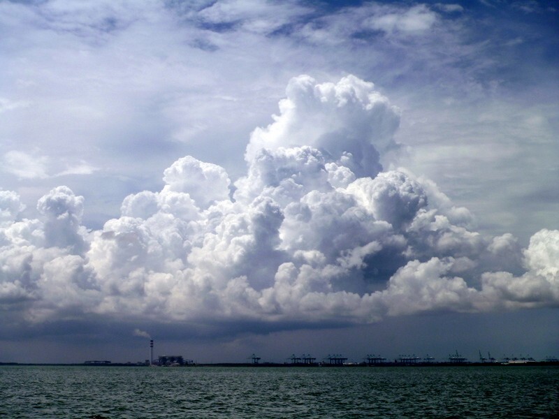 Am Nachmittag braut sich an der Nordküste der Insel Belitung ein Riesengewitter zusammen. Man sieht nur eine schwarze Wand. Wir haben Glück und es erwischt uns nicht. In der Nacht steht ein halber Mond am Himmel und leuchtet uns. Es gibt keine Probleme und wir haben eine sehr ruhige Fahrt.