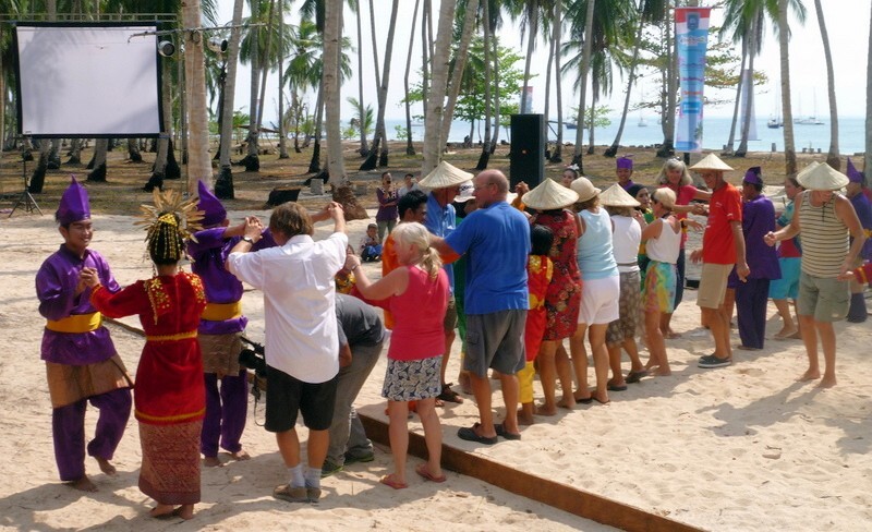 Um kurz vor acht kommen die „Persian Sands“ und die „Rylah“ an. Paul schrubbt mit Salzwasser die MABUHAY, aber diesmal werden die Fenster und Luken vorher geschlossen! Ich schmore schreibend am Laptop vor mich hin. Gegen 10h kommt Sam, der „sailindonesia“ Hauptverantwortliche und teilt uns mit, dass um 13h30 auf der Insel ein Empfang für uns stattfindet. Ich sage ihm, dass wir unbedingt aus Indonesien ausklarieren müssen, weil morgen unser Visa abläuft. Aber weil morgen ein Feiertag für die Moslems ist, kann morgen nicht ausklariert werden. Sam will das heute noch für uns erledigen.