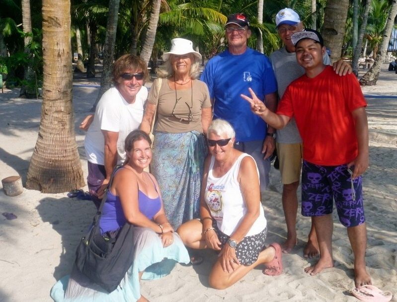 Nach einer Stunde wird per Auto eine Bäckerei gesucht. Aber die ist wegen Feiertag geschlossen. Dann wollen einige Segler Bier einkaufen. Gibt es nicht! Also fahren wir zurück zum Fischerhafen und steigen wieder in ein Holzboot ein. Die Vorbereitungen für die Massenhochzeit, die morgen hier stattfinden soll, sind in vollem Gange. 320 Paare sollen morgen heiraten! Der Steg ist voller Menschen und alle winken uns zu und lachen. Hallo Misteeer!!! Beim Ablegen rammt unser Kapitän eine Betontreppe und diverse Holzpfosten, direkt neben mir. Unterwegs zu unserer kleinen Insel bleiben wir mitten auf dem Meer plötzlich stehen und dümpeln herum. Der Motor ist überhitzt. Nach 6 Minuten geht die Fahrt weiter und um 19h sind wir zurück auf der MABUHAY.