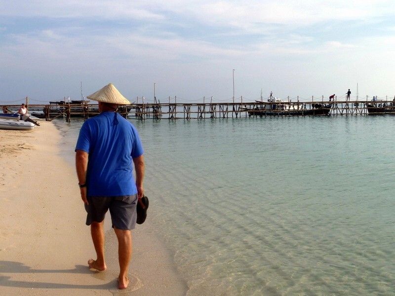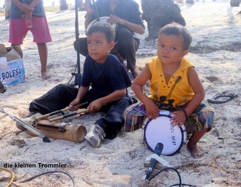 Nach einer kurzen Mittagsrast sind wir mit Andrea und Jim auf der kleinen Insel Ketawai. Wir werden sofort herzlich begrüsst und von vielen jungen Leuten umringt. Alle wollen wieder mit uns auf die Fotos. Ein junger Mann erkennt uns sogar wieder, er war in Belitung Manggar, als unsere Männer den lustigen Karaokeabend hatten. Wir sind richtige Berühmtheiten.....