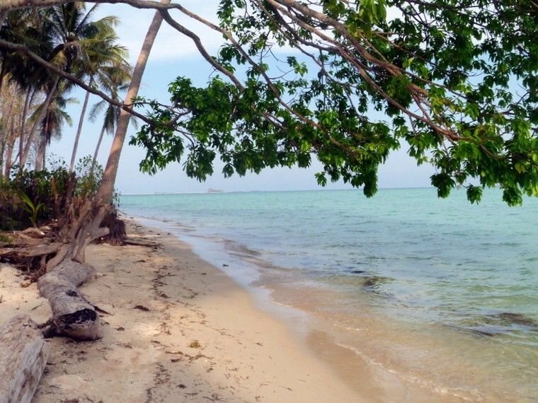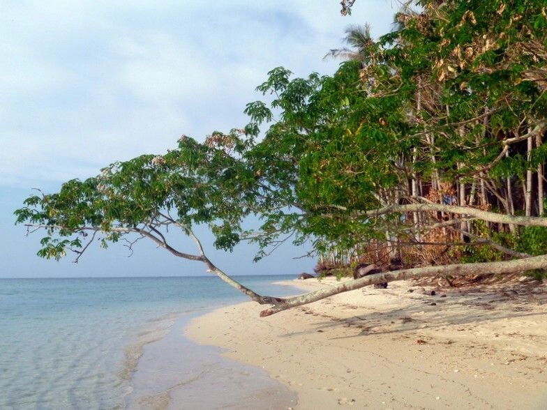 Anschliessend wandern Paul und ich einmal um die ganze Insel rum, in etwa 40 Minuten. Immer schön dem Sandstrand entlang. Die Insel Ketawei ist eigentlich unbewohnt, oder nur zeitweise von zwei Personen. So wie sie aussieht, wurde hier in kürzester Zeit alles neu aus dem Boden gestampft. Man sieht, dass das Unterholz gerodet, sprich verbrannt wurde, nur die schönen Palmen stehen noch. Es wurde eine offene „Dining Hall“ (Speisesaal), eine Küche, viele Toiletten, eine Dusche und ein neuer Steg hingestellt. Auch ein paar grosse Militärzelte fehlen nicht, wo die Helfer drin schlafen.