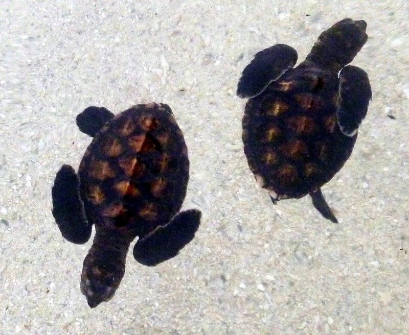 Paul schickt eines auf den Weg, ich drei. Hoffentlich werden sie nicht von den gierigen Fregattvögeln erwischt, die schon am Himmel kreisen. Regen sei Dank hatten diejenigen Glück die an der Massenhochzeit waren. Sie sind rechtzeitig für die Schildkröten-freilassung zurück. Also geht doch beides!