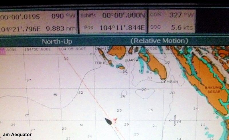 Um 19h05 überqueren wir den Aequator. Zum wievielten Mal schon? Keine Ahnung! Ist ja auch egal, auf jeden Fall sind wir nun wieder auf der Nordhalbkugel der Erde.