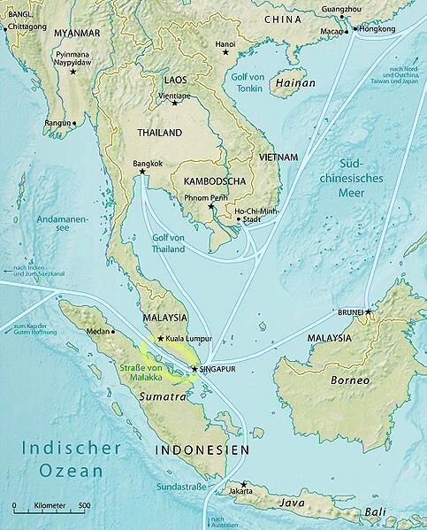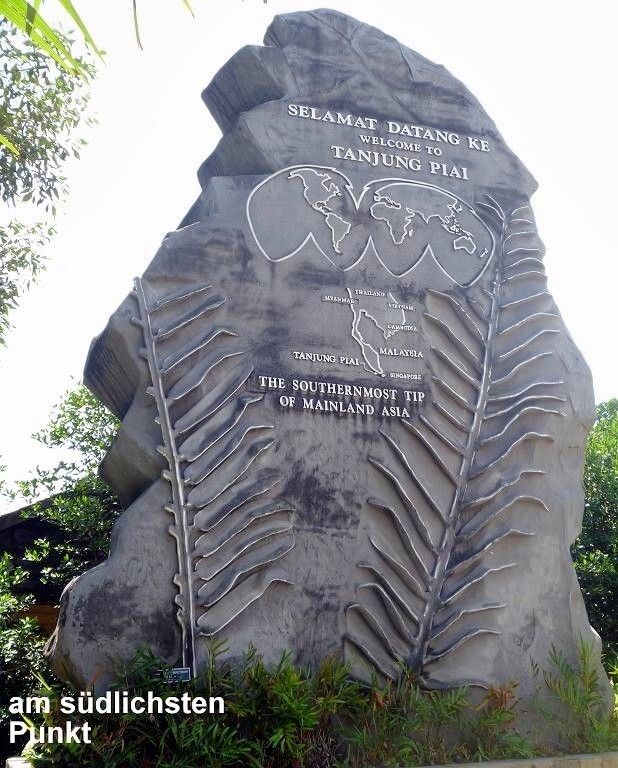 Tanjung Piai, das sich im südlichen Staat Johor befindet, ist der südlichste Punkt des asiatischen Kontinents, wenn man die Insel Singapur, die mit dem Kontinent nur durch eine künstliche Brücke verbunden ist, ausser Acht lässt. Zwischen der malaiischen Halbinsel und der indonesischen Insel Sumatra befindet sich die Strasse von Malakka, ein für den Welthandel bedeutender Seeweg und eine der meistbefahrenen Schiffsrouten der Welt.