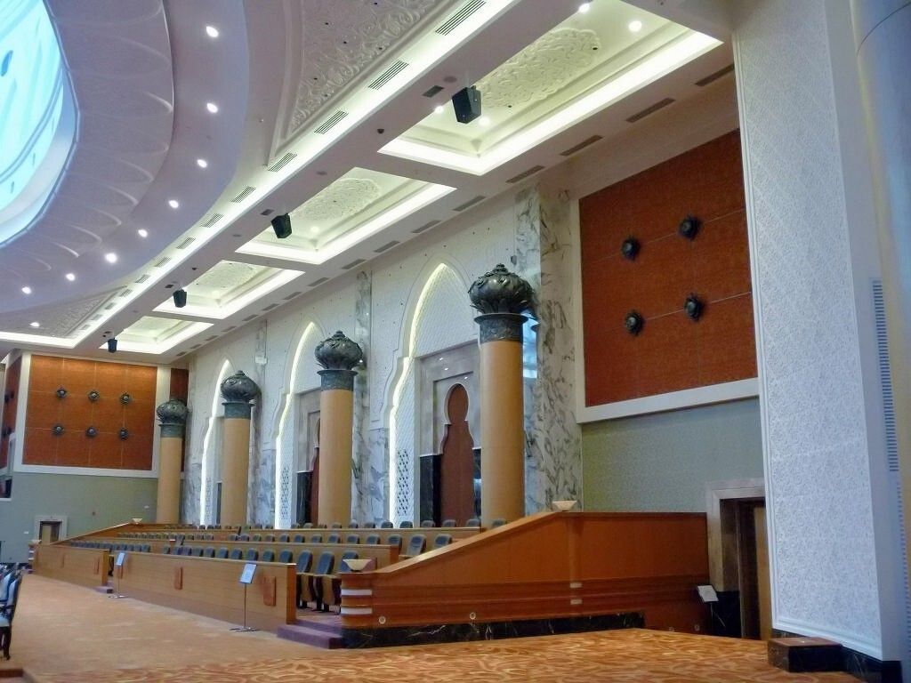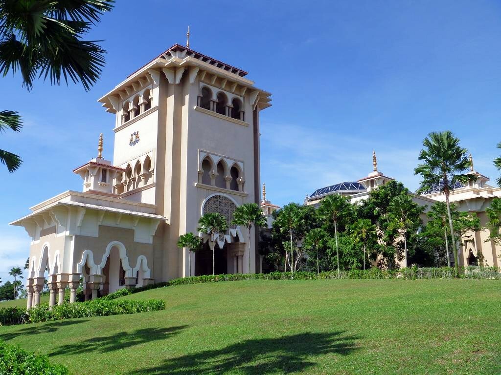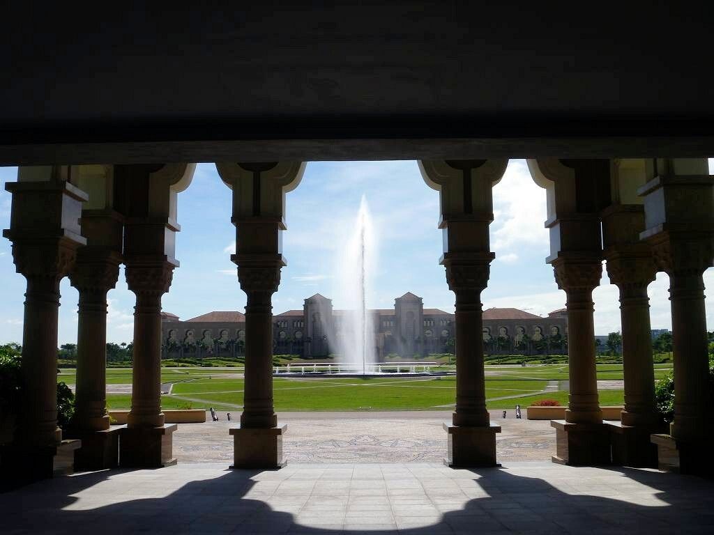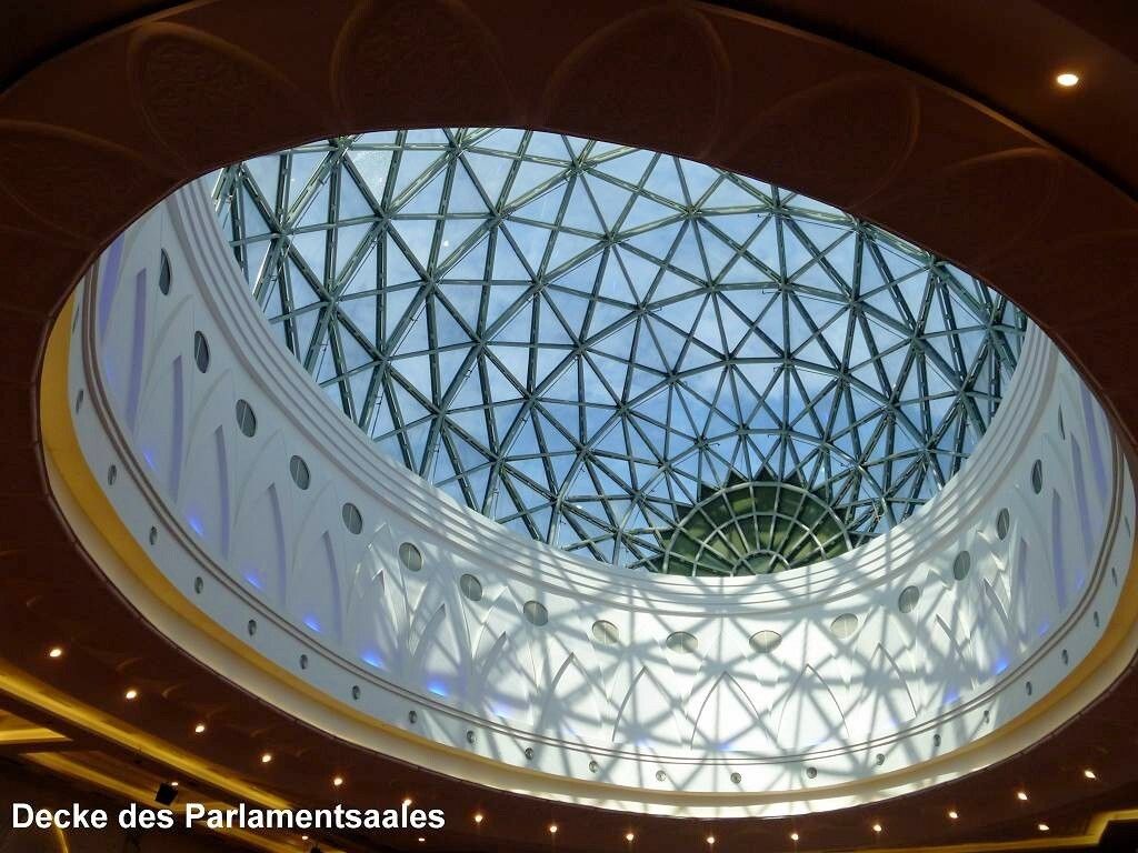 Aber wir sind rechtzeitig im Bus, der dann doch erst um 7h30 losfährt. Es sind drei Busse im Einsatz. Das Wetter ist schön. Zuerst fahren wir zur Puteri Marina, wo ein paar Segelschiffe der „sailmalaysia“ stationiert sind, und wir holen die Leute dort ab. Rund um die Marina wird unheimlich gerodet und gebaut. Überhaupt herrscht hier eine wahnsinns Bauwut. Überall schiessen Hochhäuser und riesige Einfamilienhaussiedlungen mit etwa 500 fast identischen Einfamilienhäuschen aus dem Boden. Von den Shopping Malls ganz zu schweigen. Es gibt sogar ein „LEGOLAND“. Die Strassen führen unter-und übereinander hindurch und wir sind froh, nicht selber fahren zu müssen. Jetzt geht es auf superschönen Schnellstrassen Richtung „Kota Iskandar“, das ist das ganz neu erbaute Regierungsviertel des Sultanats Johor Bahru, im Grünen.