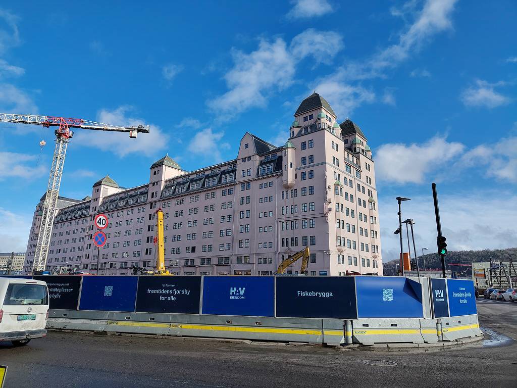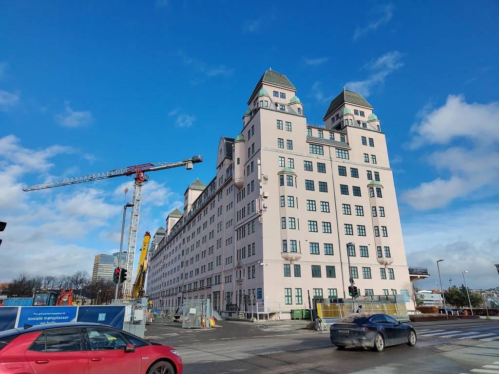 Danach möchte ich unbedingt die englische St.Edward Munch Kirche direkt neben unserem Hotel anschauen. Es kostet mich einige Überredungskunst Paul zu bewegen, mitzukommen. Es regnet nämlich ziemlich heftig und ist kalt. Aber er kommt mit, um festzustellen, dass die Kirche geschlossen ist. Also versuchen wir es bei der schwedischen Svenska Kirkan. Natürlich ist auch diese wegen Umbauten geschlossen. Überhaupt wird hier überall gebaut oder umgebaut, es hat jede Menge Baukräne. Wir laufen um den Häuserblock und sind nach ca. einer ½ Stunde zurück im trockenen Hotelzimmer. Schade, ich hätte gern mehr von diesem Oslo gesehen. Allerdings waren wir schon einmal hier, und zwar im Jahr 2018 mit unserem BONSAICAMPER.