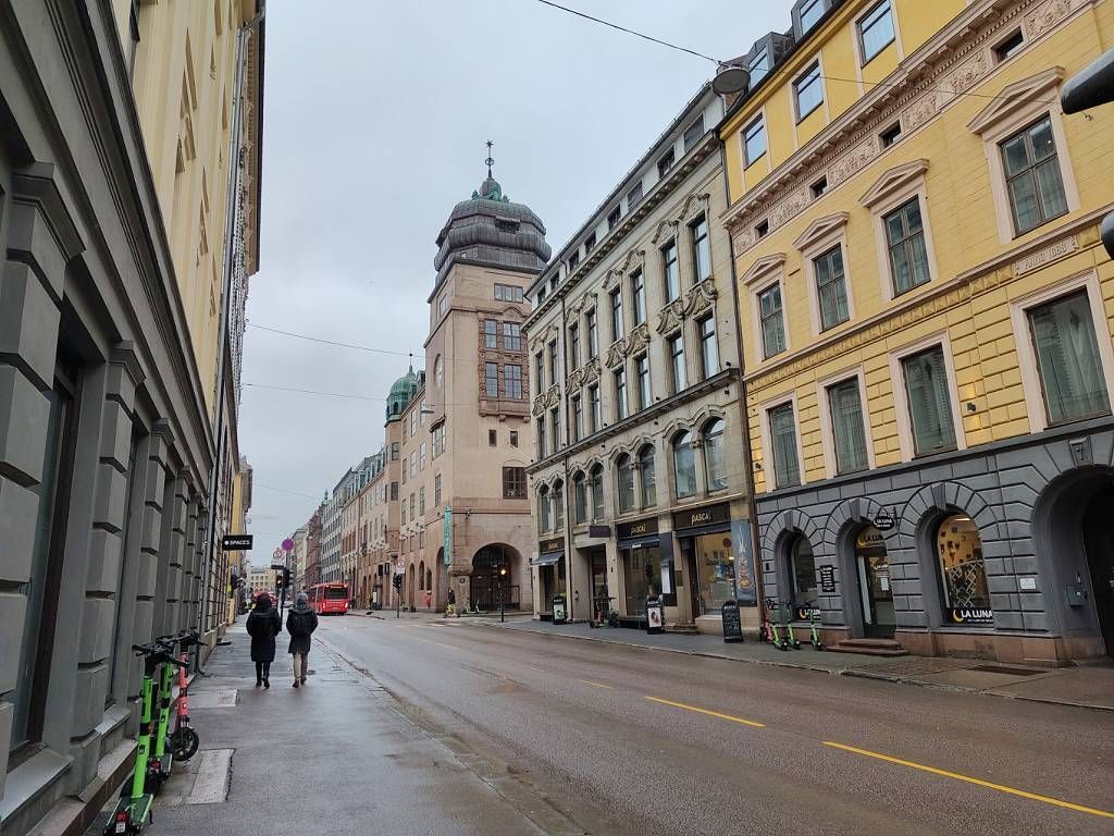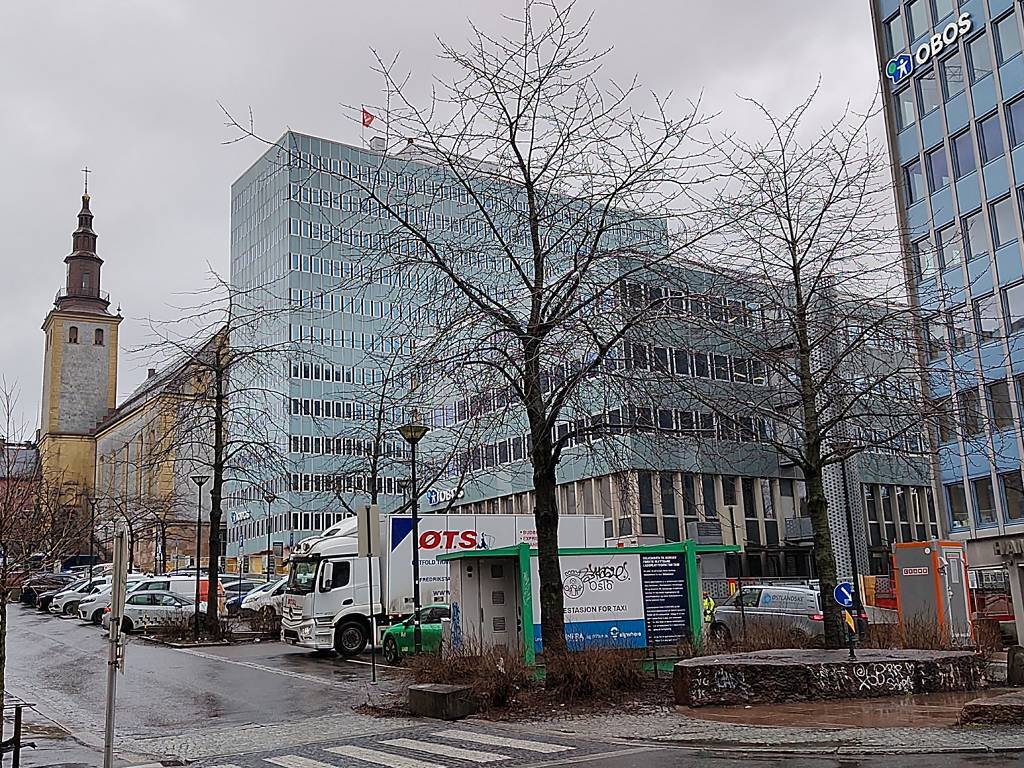 Danach möchte ich unbedingt die englische St.Edward Munch Kirche direkt neben unserem Hotel anschauen. Es kostet mich einige Überredungskunst Paul zu bewegen, mitzukommen. Es regnet nämlich ziemlich heftig und ist kalt. Aber er kommt mit, um festzustellen, dass die Kirche geschlossen ist. Also versuchen wir es bei der schwedischen Svenska Kirkan. Natürlich ist auch diese wegen Umbauten geschlossen. Überhaupt wird hier überall gebaut oder umgebaut, es hat jede Menge Baukräne. Wir laufen um den Häuserblock und sind nach ca. einer ½ Stunde zurück im trockenen Hotelzimmer. Schade, ich hätte gern mehr von diesem Oslo gesehen. Allerdings waren wir schon einmal hier, und zwar im Jahr 2018 mit unserem BONSAICAMPER.