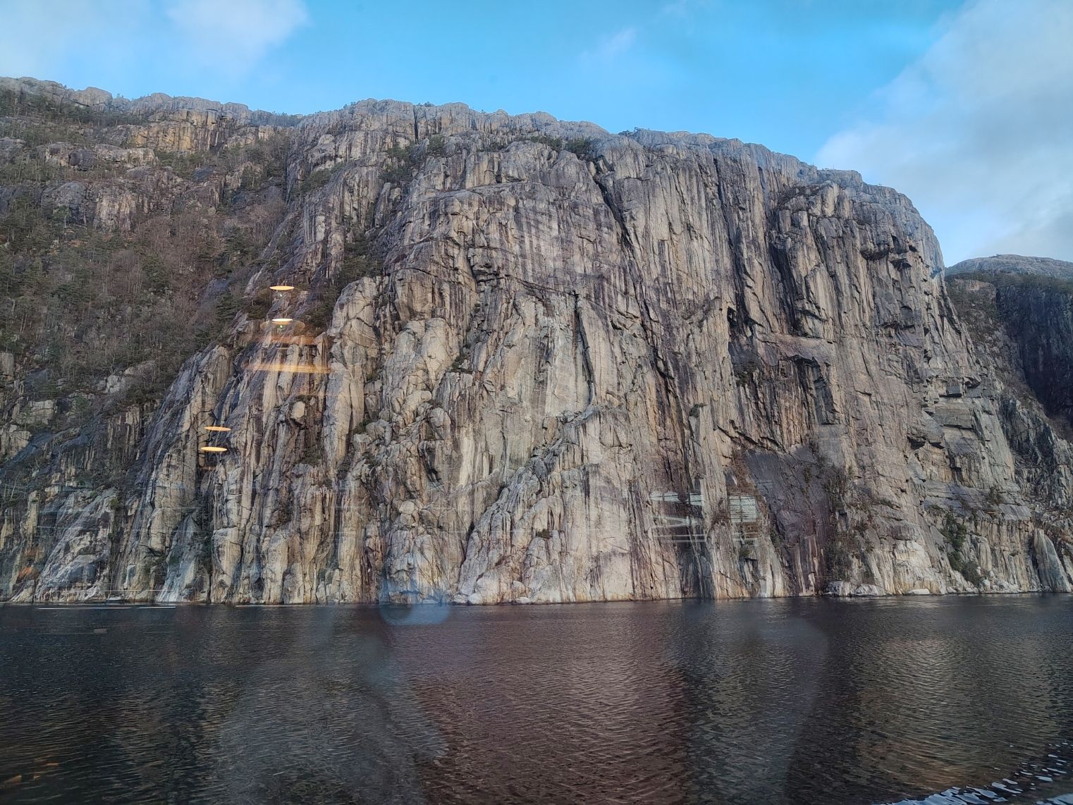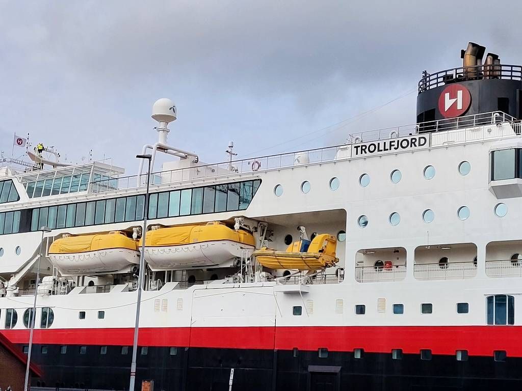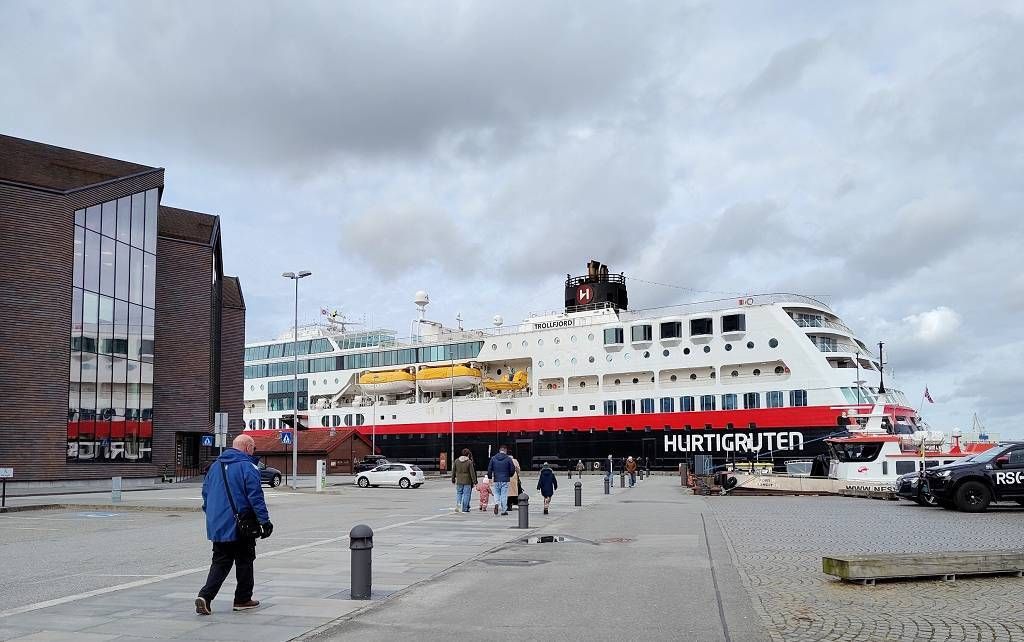 Nach dem Mittagessen an Bord sitzen wir in der Lounge auf Deck 8 und ich kann endlich die ersten Tage meines Berichtes ins Netz stellen. Ufff…! Und wir verfolgen um 16h das Ablegen in Stavanger und die Ausfahrt aus dem Fjord. Inzwischen regnet es.