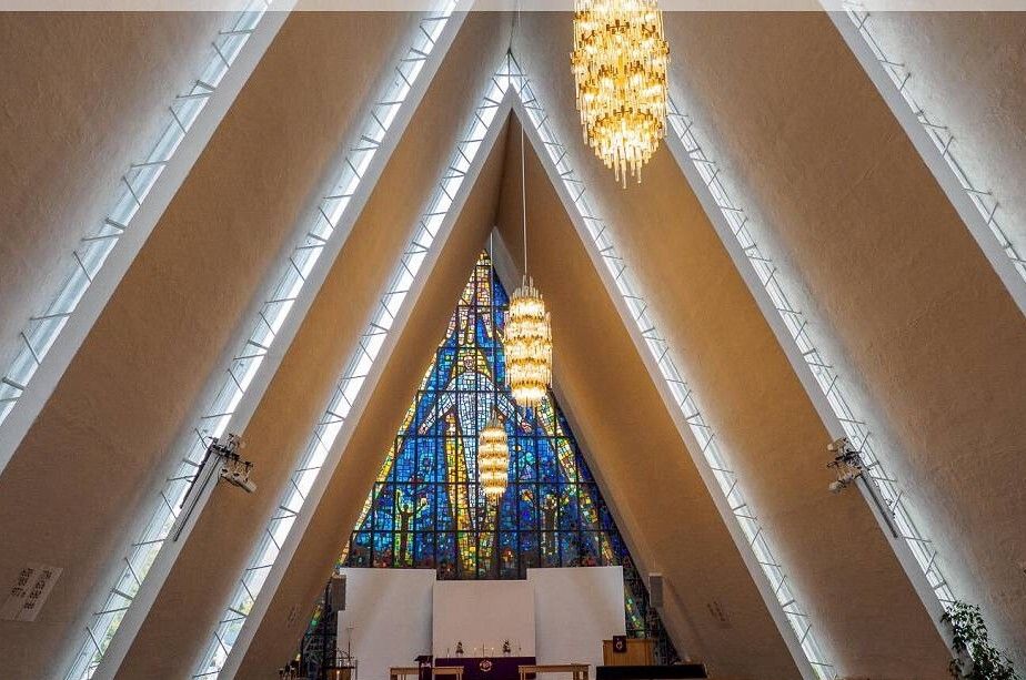 . Sie wurde geschaffen, um die lange arktische Dunkelheit, Eis und Polarlichter architektonisch zu symbolisieren. 1972 wurde das 23 Meter hohe Buntglasfenster „Die Rückkehr Christi“ von Victor Sparre eingesetzt, eines der grössten Glasgemälde Europas mit 140 Quadratmetern Fläche.