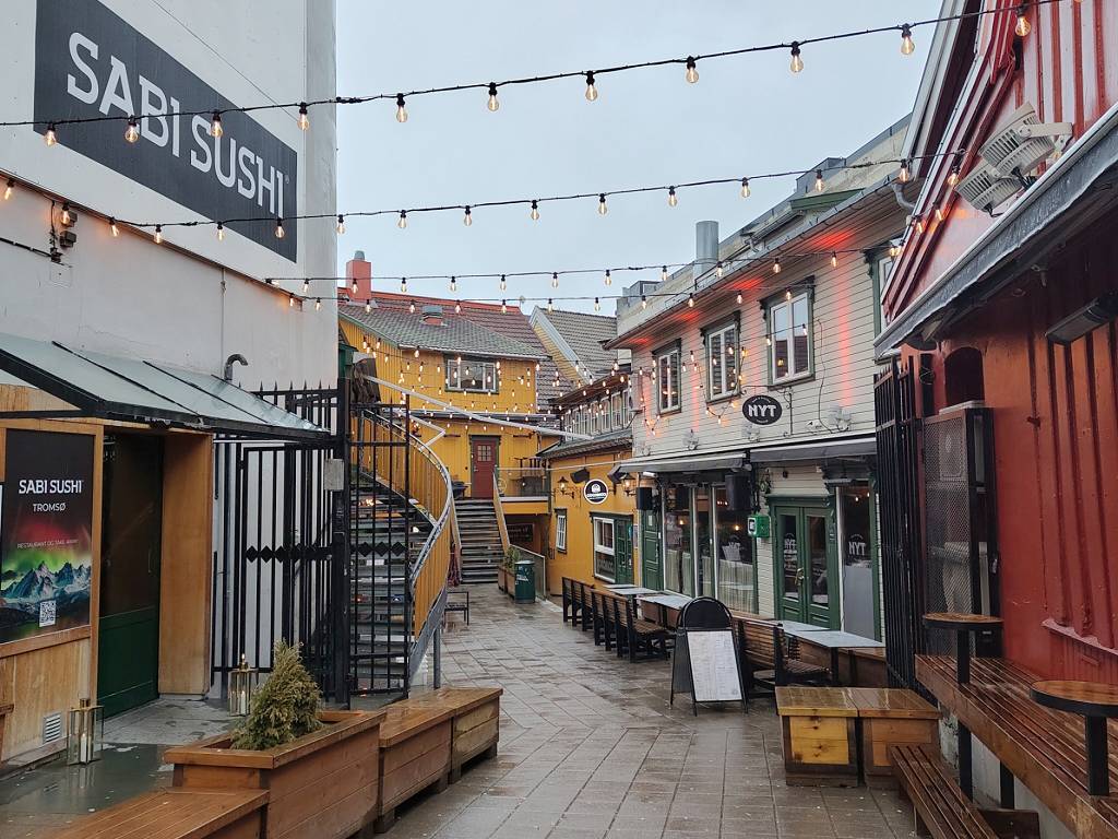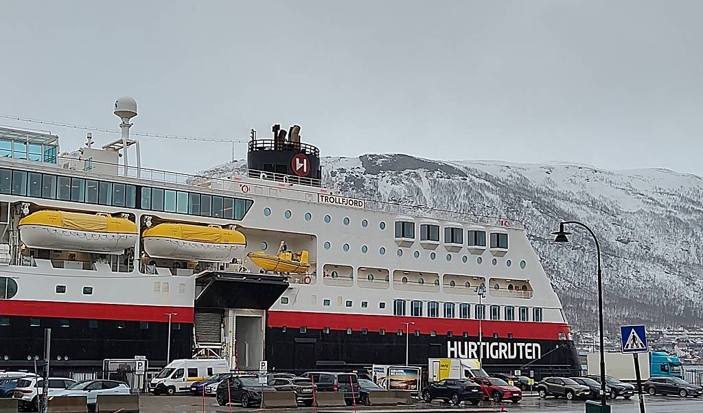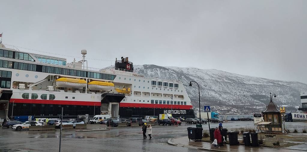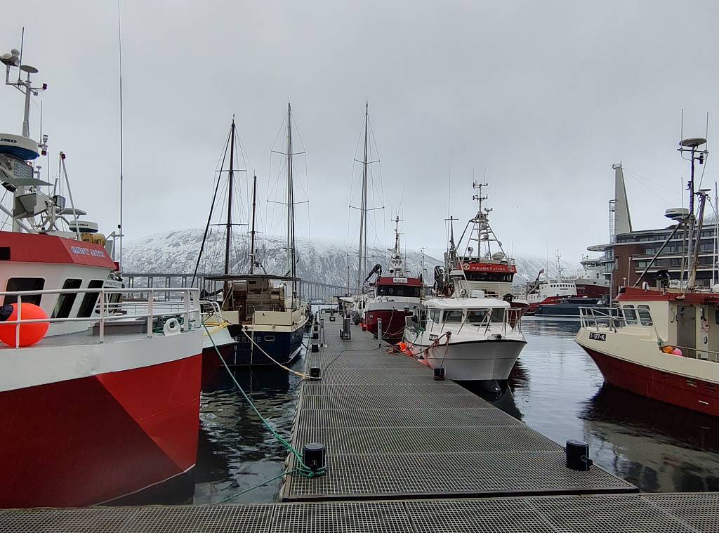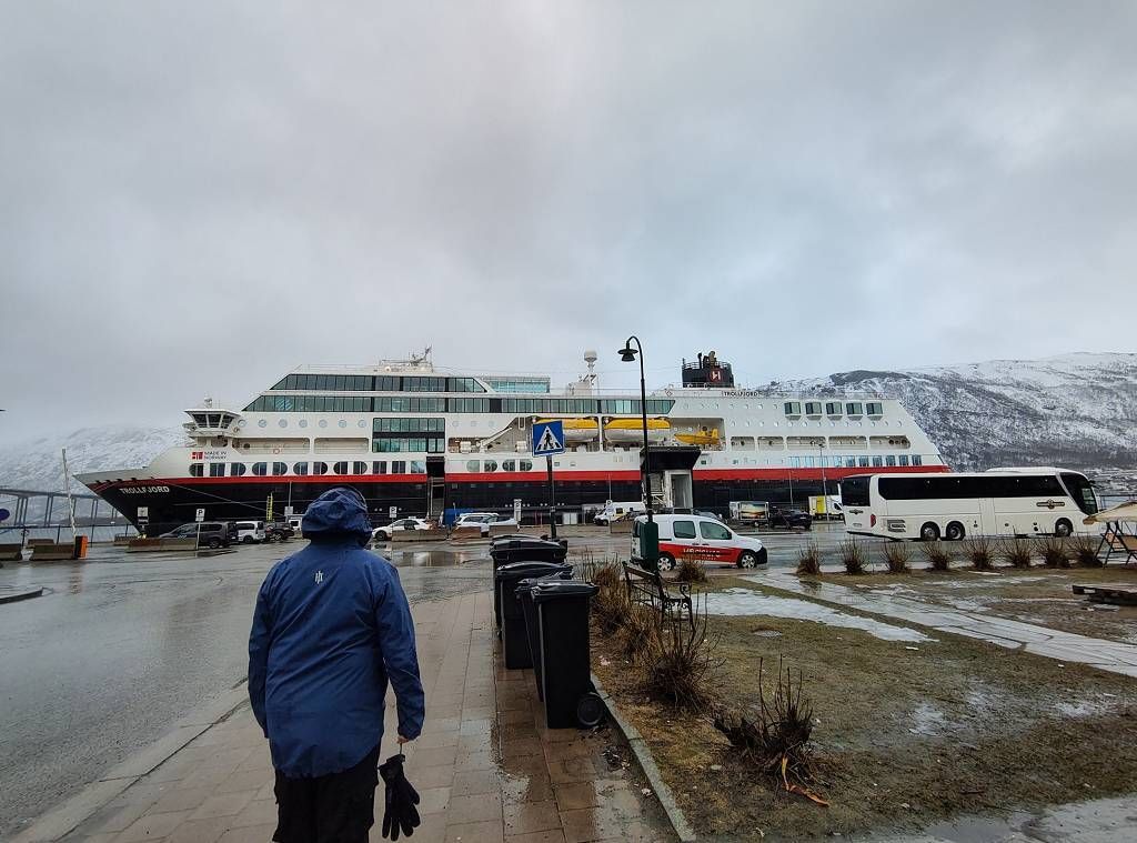 Es ist 10h als wir mitten im Zentrum von Tromsø anlegen. Und: wen wundert es ? Es regnet wieder mal in Strömen….