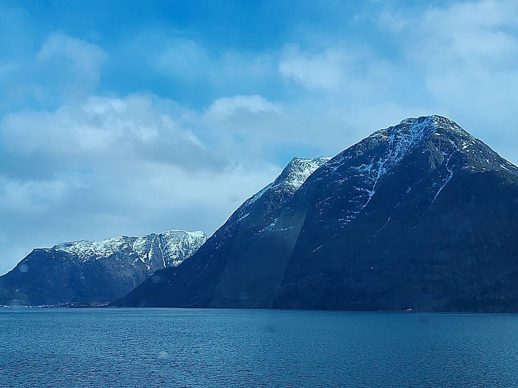 Gegen 14h( anstatt wie geplant um 09h00) erreichen wir die kleine Stadt Åndalsnes. Heute ist das Wetter sehr unterschiedlich. Einmal strätzt es heftigen Regen vom Himmel, dann scheint wieder kurz die Sonne und später gibt es einen Graupelschauer. Also von allem etwas dabei. Die einfahrt in den Isfjord ist richtig schön. Paul und ich machen einen etwa 1¼ -stündigen Spaziergang durch den kleinen Ort. Wir haben Glück, meistens scheint die Sonne. Aber wir haben das Gefühl, dass Åndalsnes ausser dem Bahnhof nur aus Restaurants und Souvenirshops besteht.