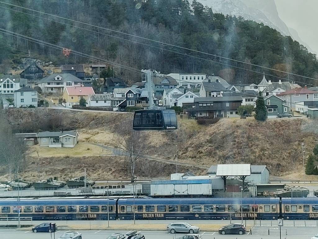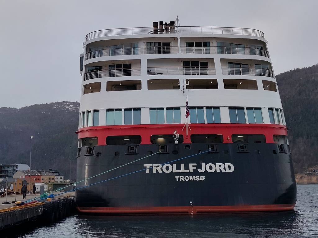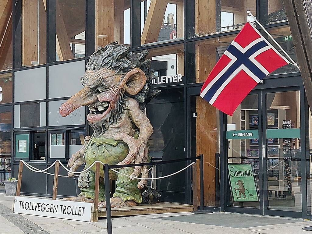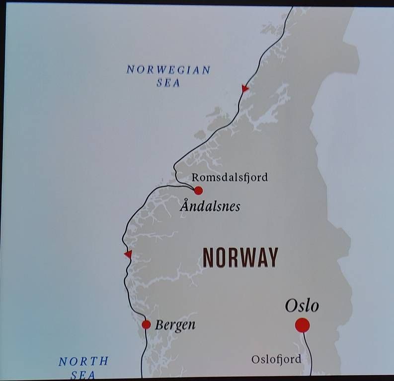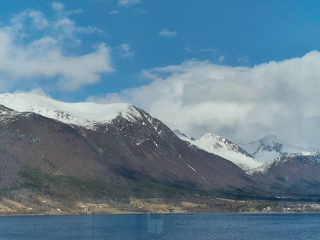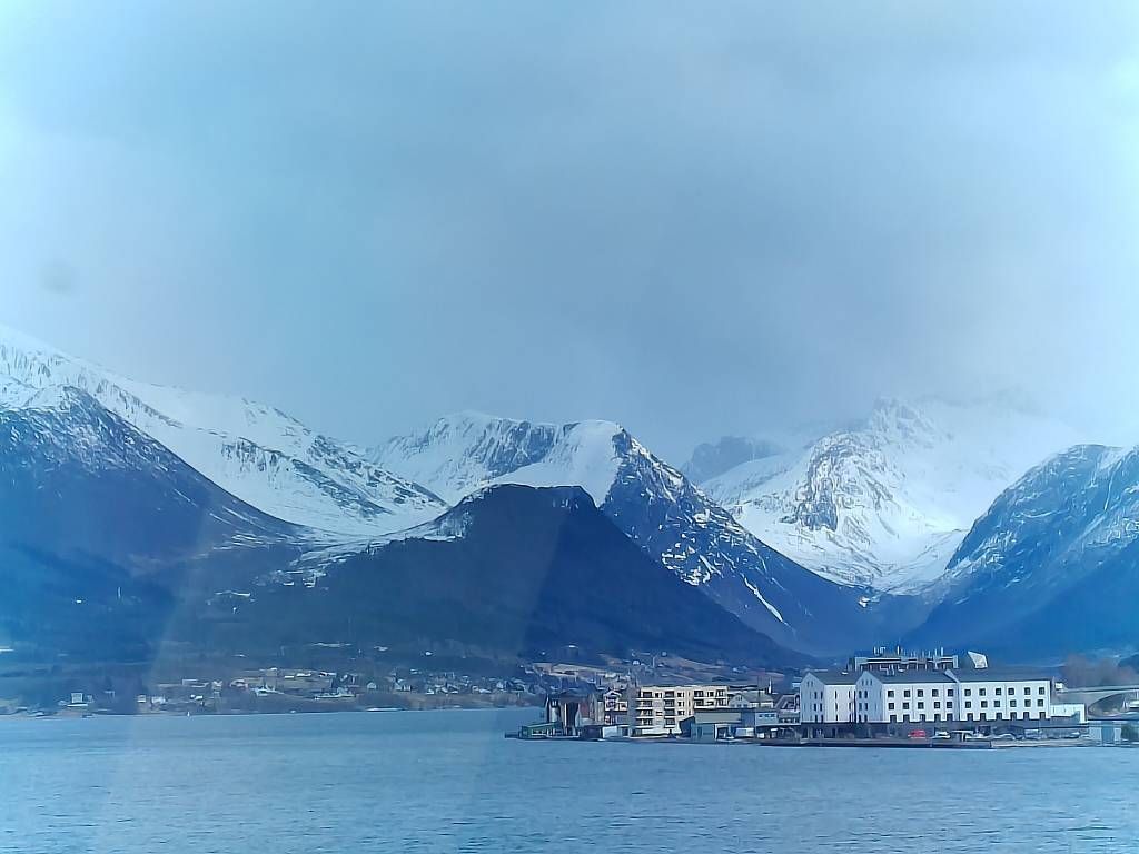 Gegen 14h( anstatt wie geplant um 09h00) erreichen wir die kleine Stadt Åndalsnes. Heute ist das Wetter sehr unterschiedlich. Einmal strätzt es heftigen Regen vom Himmel, dann scheint wieder kurz die Sonne und später gibt es einen Graupelschauer. Also von allem etwas dabei. Die einfahrt in den Isfjord ist richtig schön. Paul und ich machen einen etwa 1¼ -stündigen Spaziergang durch den kleinen Ort. Wir haben Glück, meistens scheint die Sonne. Aber wir haben das Gefühl, dass Åndalsnes ausser dem Bahnhof nur aus Restaurants und Souvenirshops besteht.