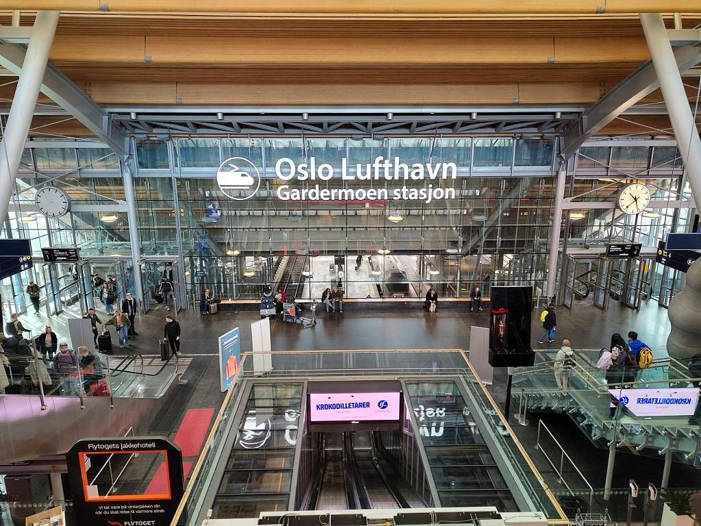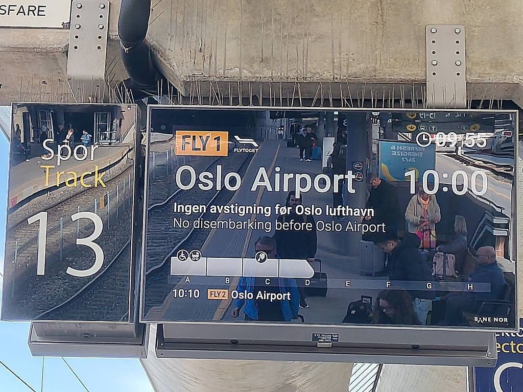 Pünktlich um 8h erreichen wir Oslo. Die Nachtfahrt war sehr ruhig, trotzdem haben wir beide sehr schlecht geschlafen. Nach dem Frühstück an Bord laufen Paul und ich mit unseren Koffern zum etwa 600m entfernten Bahnhof. Weil es heute schön sonnig ist, ist das überhaupt kein Problem. Am Bahnhof nehmen wir um 10h den Flytoget Zug und sind 22 Minuten später schon am Flughafen von Oslo. Das ist einfach nur super, dieser Service! Auch hier klappt alles problemlos, nur Paul wird beim Sicherheitscheck seine AXE-Deo- Spraydose weggenommen. Endlich, um 13h50 hebt unser SAS-Flug nach Stockholm ab.