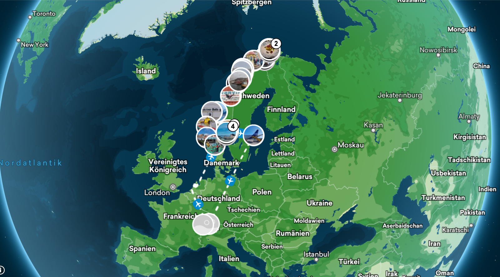 auf dem Rückflug Oslo – Stockolm – Zürich im ganzen ca. 3588km