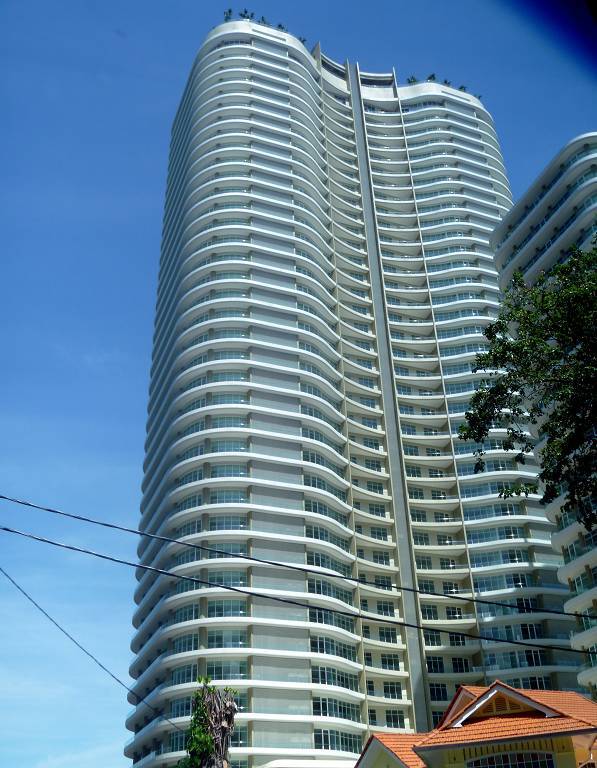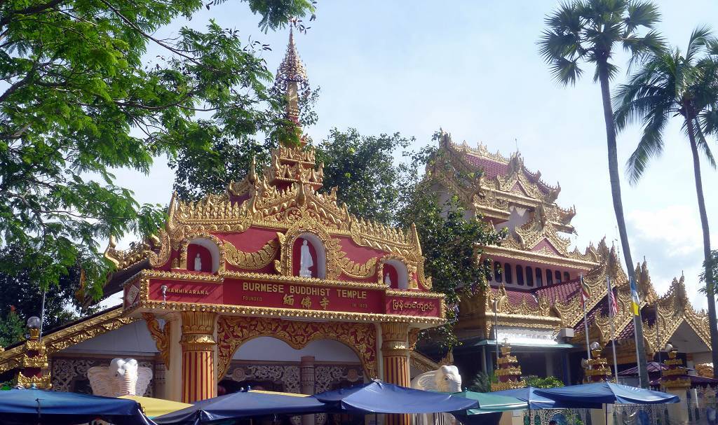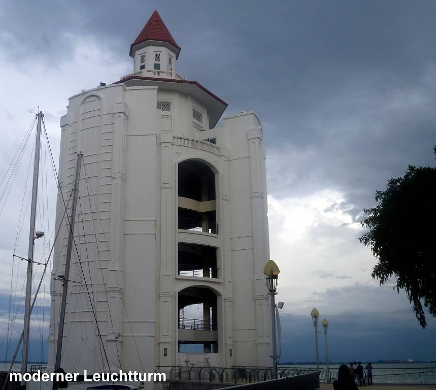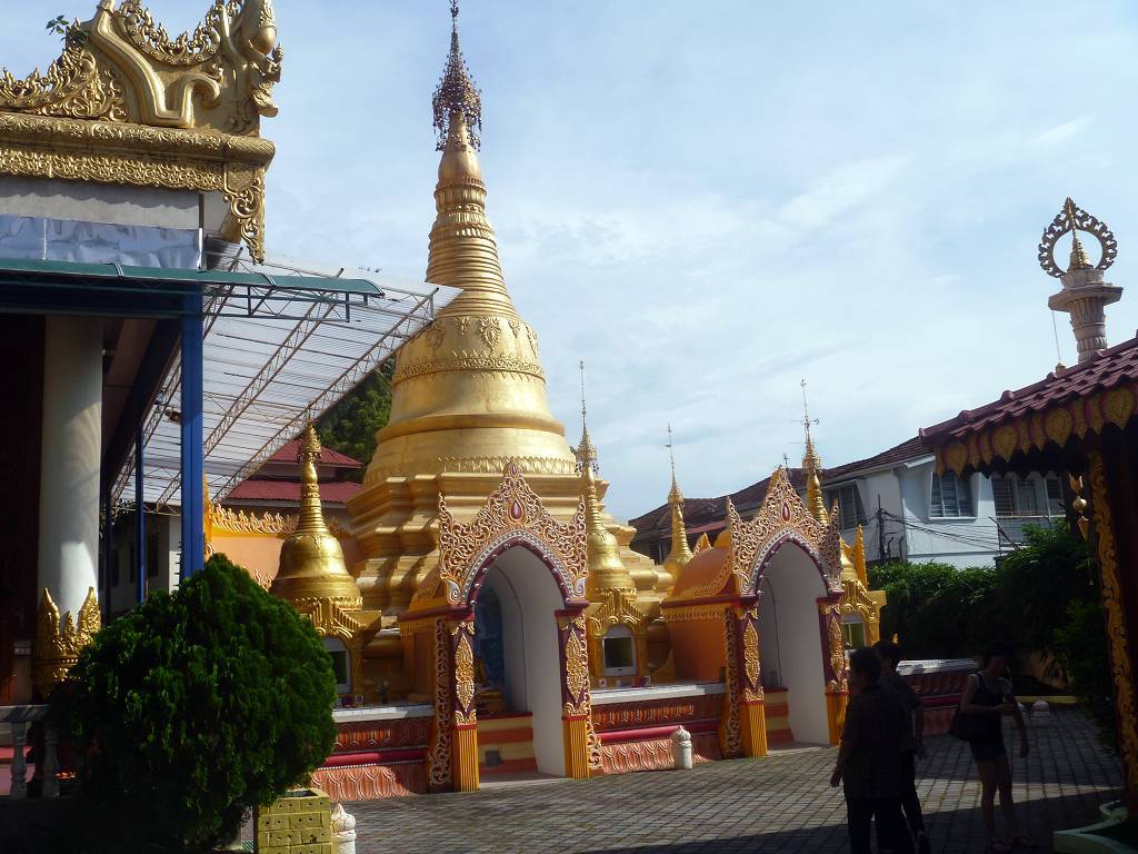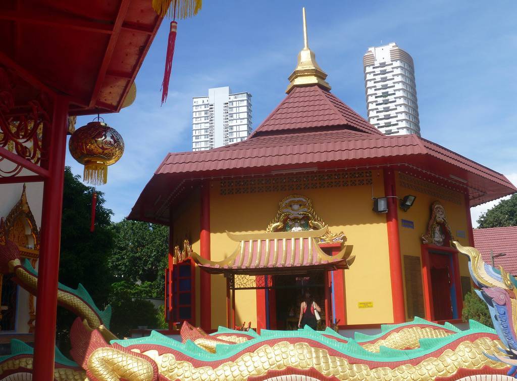 Jetzt schauen wir uns noch einen Buddhistischen Thaitempel und einen Buddhistischen Burmatempel an. Zwei total verschiedene Sachen, aber beide sehr schön. Und weil wir wieder so lange im Stau stecken wird der botanische Garten ausgelassen und wir gehen direkt zum superneuen Gebäudekomplex Straits Quay, mit Shopping Mall und Marina. Diese Gegend wurde im 2004 vom Tsunami getroffen und alles wurde neu überbaut. Überhaupt herrscht auch hier in Penang, wie in Kuala Lumpur eine Wahnsinnsbauwut!!! Überall wird dem Meer Land abgerungen und die Hochhäuser schiessen aus dem Boden wie die Pilze.