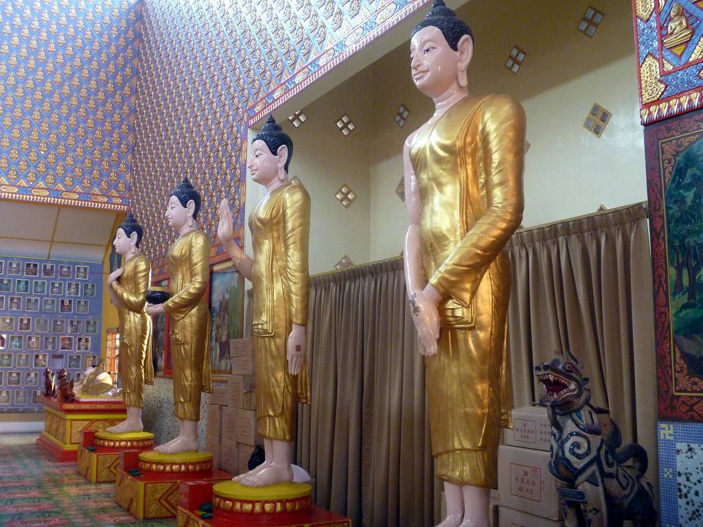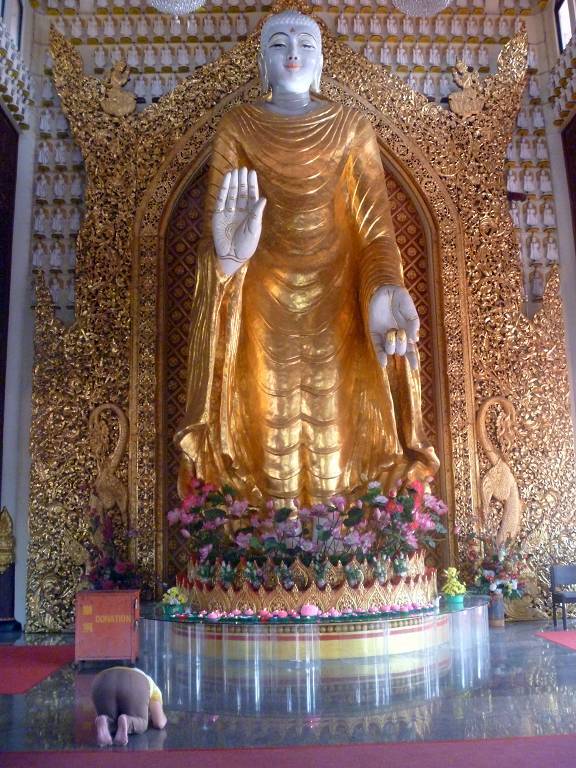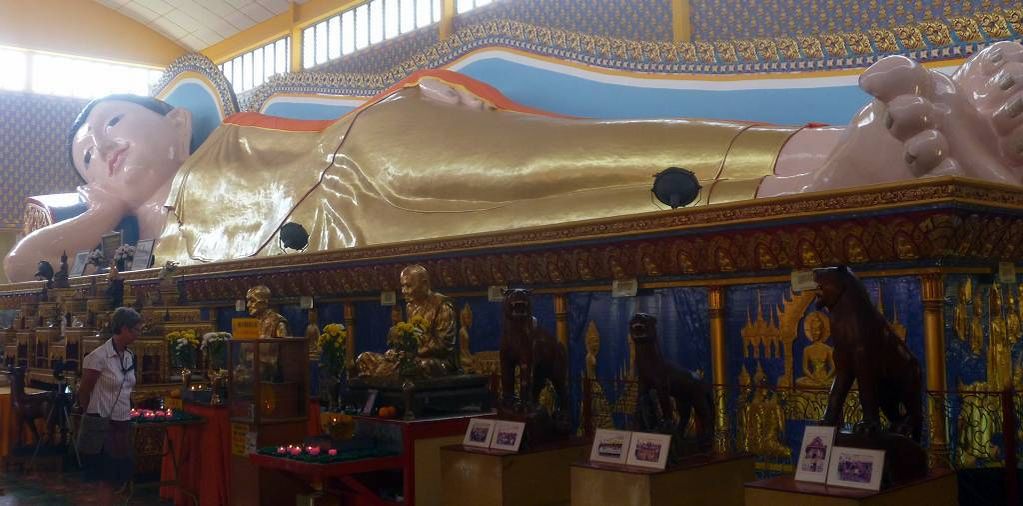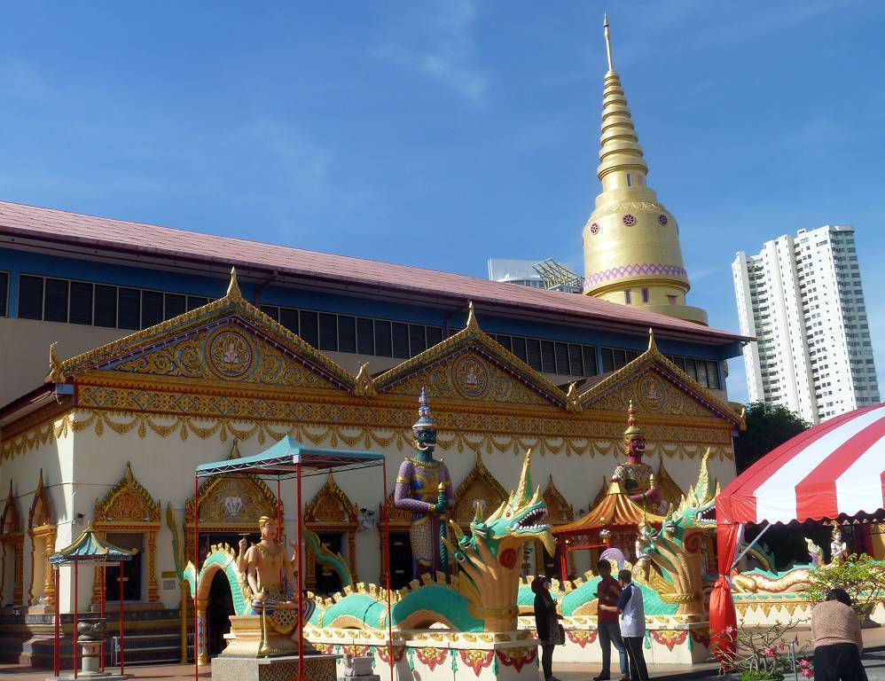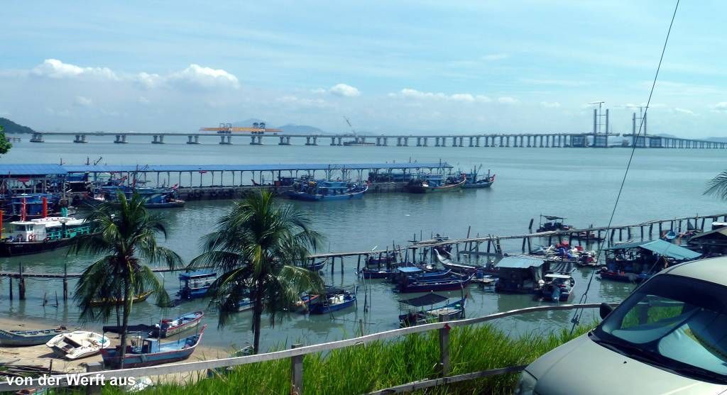 Jetzt schauen wir uns noch einen Buddhistischen Thaitempel und einen Buddhistischen Burmatempel an. Zwei total verschiedene Sachen, aber beide sehr schön. Und weil wir wieder so lange im Stau stecken wird der botanische Garten ausgelassen und wir gehen direkt zum superneuen Gebäudekomplex Straits Quay, mit Shopping Mall und Marina. Diese Gegend wurde im 2004 vom Tsunami getroffen und alles wurde neu überbaut. Überhaupt herrscht auch hier in Penang, wie in Kuala Lumpur eine Wahnsinnsbauwut!!! Überall wird dem Meer Land abgerungen und die Hochhäuser schiessen aus dem Boden wie die Pilze.