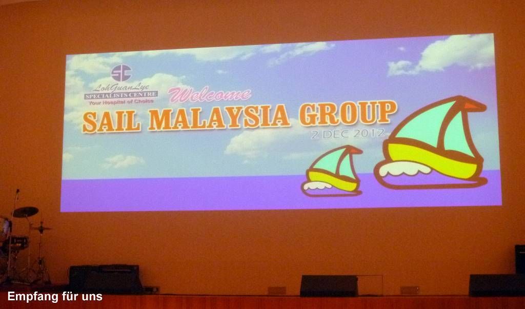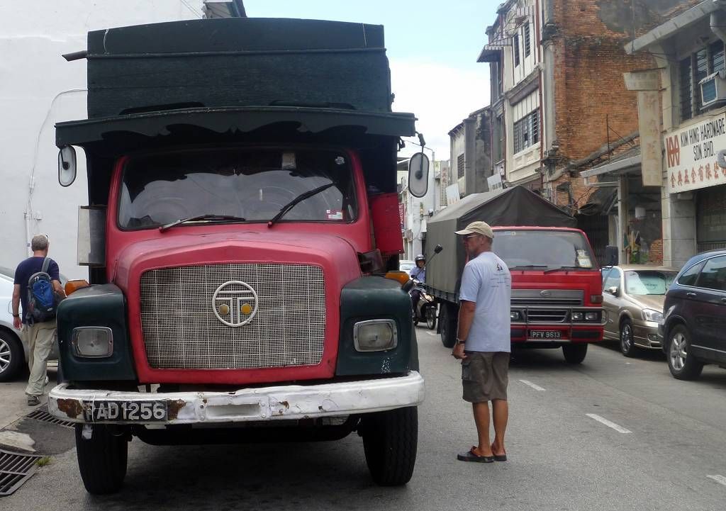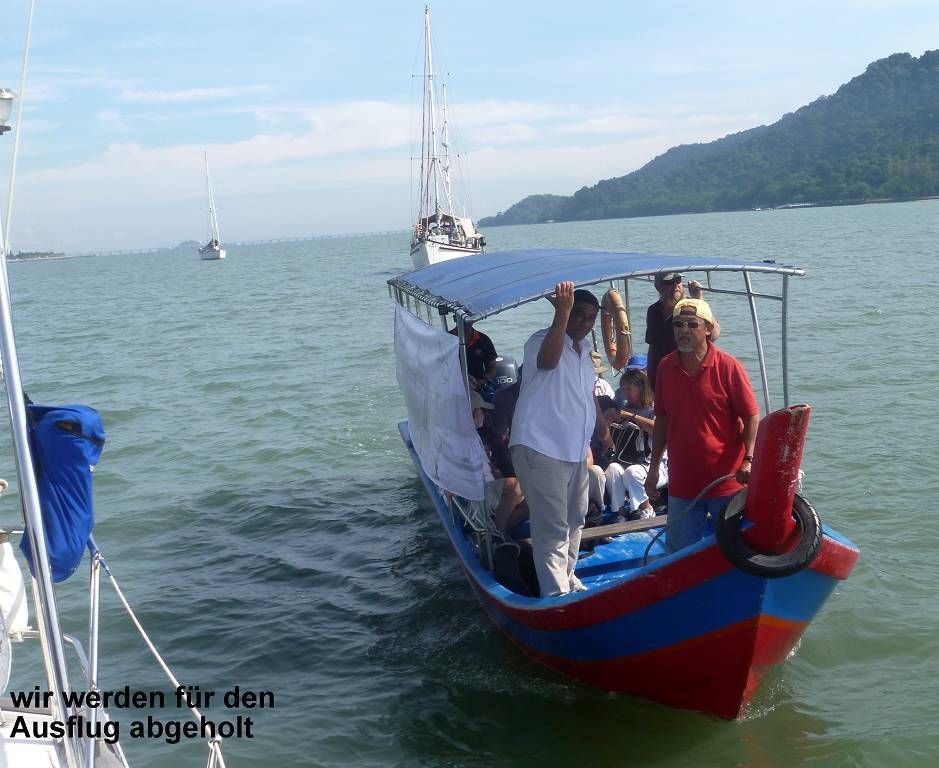 Um 9h30 sollen wir auf den Schiffen bereitstehen, um von einem kleinen Shuttle Boot von der Pen Marine (eine Werft, die uns den Tag sponsert), abgeholt und an Land gebracht werden. Es dauert fast zwei Stunden, bis endlich alle Leute (etwa 60) in den zwei Bussen sitzen. Wir fahren zur Pen Marine, wo uns zwecks Werbung die Werft gezeigt wird. Von hier geht es mit den Bussen nach George Town. Und weil es so viel Verkehr hat, stecken wir im schönsten Stau fest und kommen nur sehr langsam voran. Die Malaysier, seien es Chinesen, Inder oder Malaien, scheinen sehr geduldige Autofahrer zu sein. Nie hören wir jemanden hupen oder sehen jemanden drängeln.