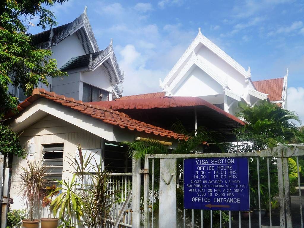 Etwa um 9h15 sitzen wir in einem Taxi Richtung George Town. Wir wollen zum Konsulat von Thailand um unsere Visas zu beantragen. Es hat schon viele Leute da. Wir müssen jeder ein Formular ausfüllen, zwei Passfotos, den Pass und eine Kopie des Passes.
