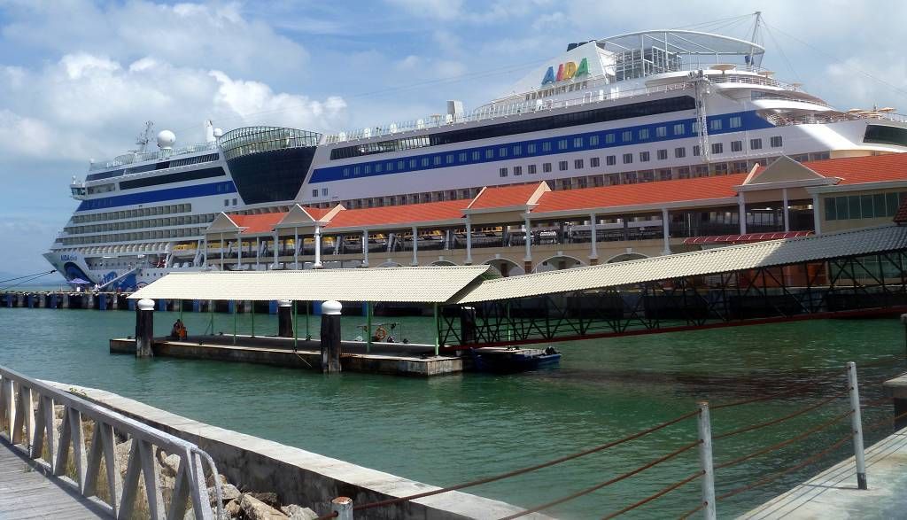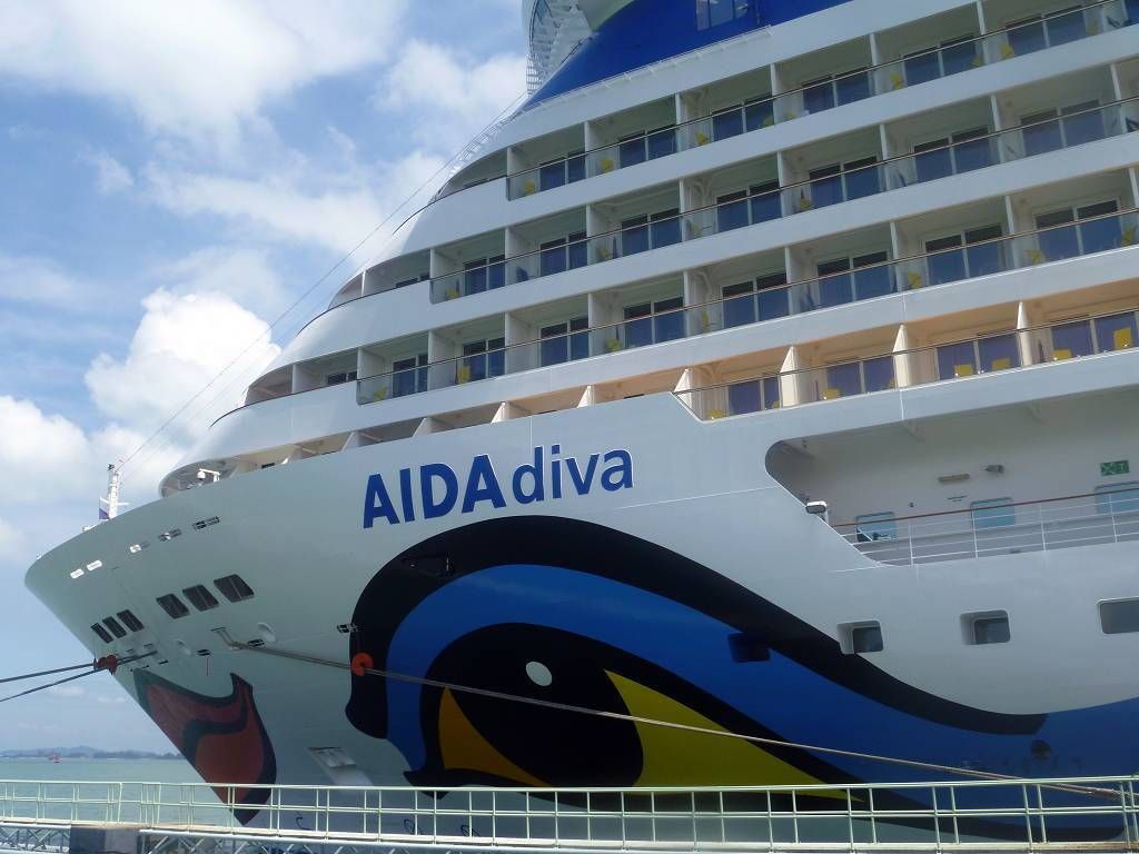 Nach dem Essen flanieren wir durch Little India bis zum Terminal, wo die grossen Kreuzfahrer anlegen. Es sind zwei gewaltige Schiffe da, eines die „Virgo“ aus Panama und die andere die AIDA Diva aus Genua. Wir staunen die AIDA von aussen an und sprechen dann mit einem Deutschen Ehepaar. Die machen in zwei Wochen eine Riesentour von Cochin (Indien), nach Colombo (Sri Lanka), Penang, Kuala Lumpur, (Malaysia), Singapur, Vietnam und Bangkok (Thailand). Da ist unsere Art zu reisen ja direkt das absolute Schneckentempo.