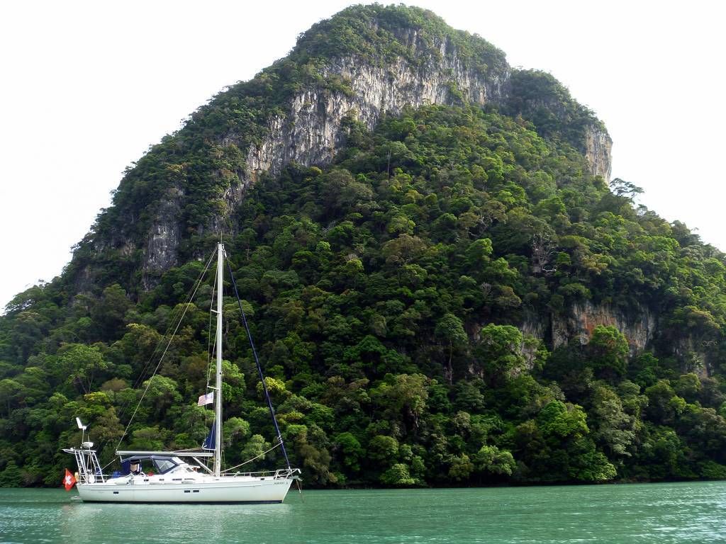 Wir ankern um 12h25 fast am gleichen Ort wie letzte Woche, vor der Stadt Kuah. Um 13h, wir sind gerade am Suppe essen, kommt die FREYJA, mit Antje und Holger aus Singapur angesegelt. Wir haben hier auf sie gewartet, weil sie zwei von unseren Gasflaschen bei sich an Bord haben.