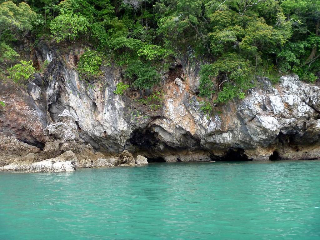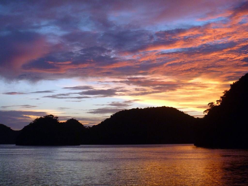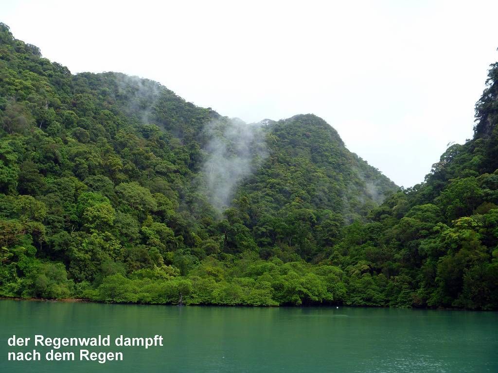 Wir haben beide prima geschlafen. Die MABUHAY liegt ganz ruhig da, wie einbetoniert. Überhaupt ist es hier herrlich ruhig, kein Muezzin, kein Karaoke-Gesinge und kein Verkehrslärm. Nur die Tukane, die früh morgens rufen und tagsüber die Seeadler die manchmal kreischen. Es ist wunderschön hier zwischen den Inseln. Das Wasser ist grün und der Regenwald an den Hängen der Inseln auch. Wir fragen uns, ob jemals schon ein Mensch diese Wälder betreten hat und wie viele Tiere sich da drin wohl verstecken. Die Idylle wird nur hie und da gestört von ein paar Touristen mit ihren Wasser-Scootern, die wie die Irren hier vorbeibrettern.