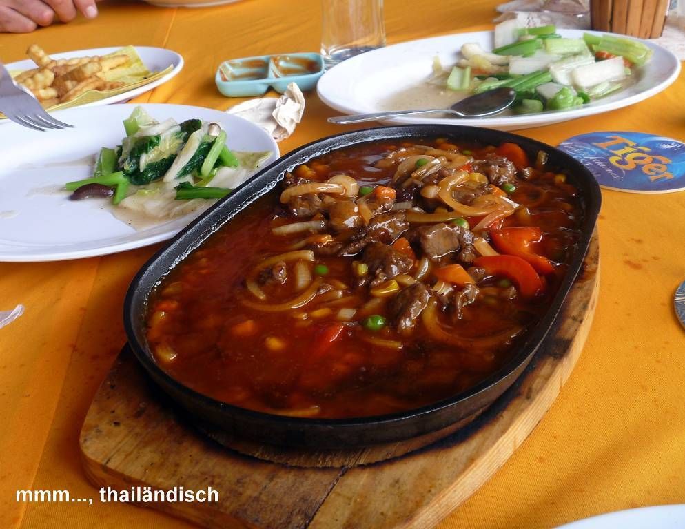 eigentlich hier im „The Pier“ zusammen essen, aber weil die Bedienung so unfreundlich guckt, verlegen wir uns ins Restaurant „Thai Seafood“. Hier ist es gemütlich, das Thai-Essen sehr gut und die Servierer sind sehr freundlich. Bellinda und Fritz kehren mit ihrem Mietauto zur Rebak Marina zurück und wir zu unseren Schiffen. Beim Dinghysteg treffen wir auf zwei junge Österreicher aus Vorarlberg. Sie suchen verzweifelt die finnische Segelmacherin Erja. Und wir als alte Hasen wissen natürlich wo die ist.