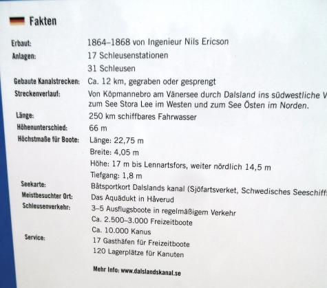 Dort schauen wir ca. 1½ Stunden zu, wie ein Passagierschiff hinauf und ein Segelschiff hinunter geschleust werden. Das ist sehr interessant, viel komplizierter als beim Göta Kanal, wo es „nur eine einfache“ Schleuse hatte. Dieser Kanal ist ein wahres Meisterwerk der Kanalbaukunst. Die Trogbrücke bei Håverud besteht aus Stahlblech und wird von 33‘000 Nieten zusammengehalten. Sie überwindet eine Stromschnelle und wird ihrerseits von je einer Bahn und Strassenbrücke überspannt.