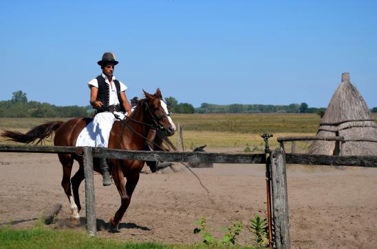 Heute gönnen wir uns etwas ganz Besonderes. Wir besuchen eine Reiterschau. Um 11h ist Treffpunkt bei der Camping Reception. Von da geht es mit Ross und Wagen in ca. 12 Minuten Holperfahrt zu einem kleinen Museum. Es ist sehr schön gemacht, aber leider alles nur auf Ungarisch angeschrieben. Zum Glück gibt uns die Museums-Wächterin ein Blatt wo die wichtigsten Dinge auf Deutsch beschrieben sind. Die Eichen vor dem Museum sind über 170 Jahre alt. Das ganze Gebiet gehört zum Nationalpark Kiskunság. Vom Museum laufen wir zum Gut, wo die Reiterschau stattfindet. Aber vorher schauen wir uns noch die verschiedenen Tiere des Gutes an. Es hat Esel, Wollschweine, Rinder mit riesigen Hörnern, Schafe und natürlich jede Menge sehr schöne Pferde. Die Reitervorführung dauert etwa 30 Minuten und ist sehr gut gemacht. Ein Bravo an die 6 Reiter. Wir staunen nicht schlecht, als wir zwei 8. Schulklassen aus Wünnewil (FR) antreffen. 26 Schüler und 4 Lehrer. Die machen hier eine Woche einen Schultausch. Im Frühjahr werden dann die Ungarischen Schüler für eine Woche in die Schweiz kommen. Wir finden das super!!! Per Ross und Wagen geht es zurück zum Restaurant und Camping, wo wir um 13h15 eintreffen.