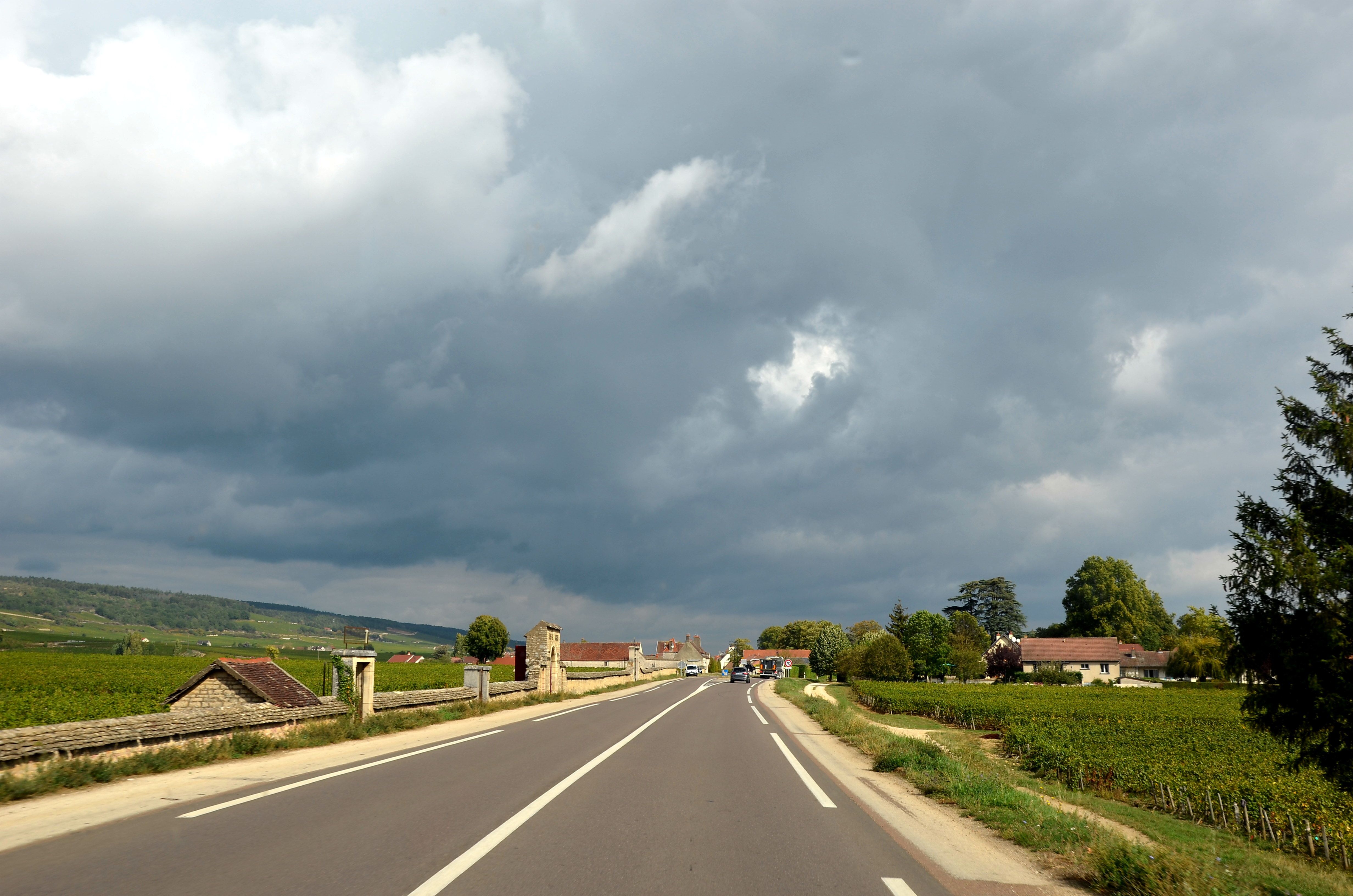 Bei der Abfahrt um 9h35 ist es stark bewölkt, 18°. Vorbei an Beaune fahren wir durch lauter Rebenfelder nach Dijon. Die maschinelle Rebenernte ist voll im Gange.