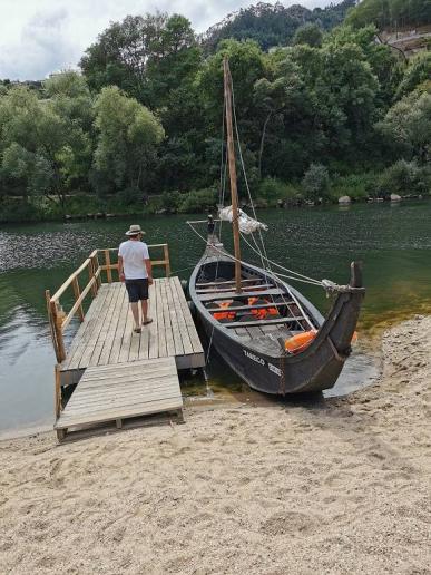 Von 16h bis 17h machen wir eine kleine Bootsfahrt (6€ /Pers.) mit einem traditionellen Holzboot auf dem Mondego. Die Holzboote heissen hier „Serranas“. Die werden mit einem Seil über eine Rolle gesteuert. Es ist unglaublich schön, so ruhig auf dem Wasser dahinzugleiten (nur mit einem Elektromotörchen).