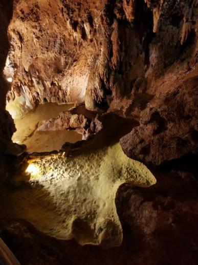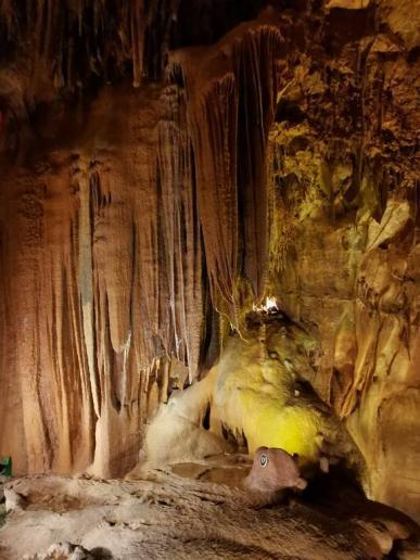 Man gelangt in den Hauptsaal und bekommt den Eindruck, man würde in einen riesigen Schlund gehen. Um uns herum wunderschöne Steingebilde, die mit leuchtenden Farben fast schon mystisch wirkten.