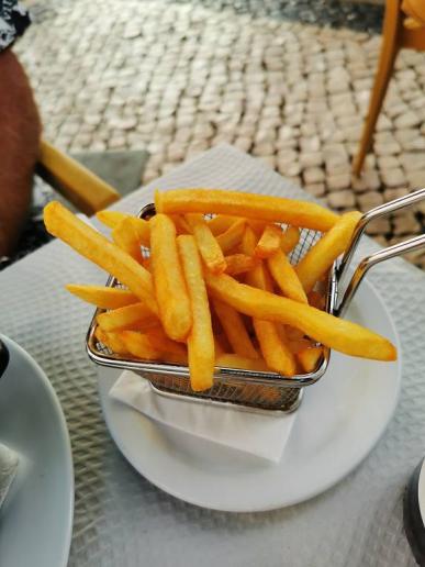 Und weil wir heute den 40.Tag unserer Reise haben, gehen wir am Abend aus zum Essen. Im „Restaurant 2 Irmãos„ (2 Brüder) gibt es draussen für Paul ein Lammgulasch und für mich Thunfischsteak. Es ist alles sehr gut, der Abend schön, die Bedienung Miguel und Isabelle sehr nett, nur die Million Fliegen fehlen…!!!