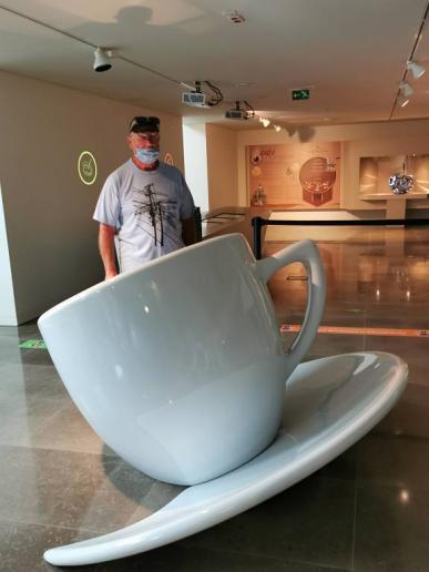 Wir besuchen das Kaffee-Museum (Eintritt für Rentner 5€/Person, sonst 8€/Person). Zuerst wird uns an einer Maschine Fieber gemessen (ich habe 36,8°), danach müssen wir durch einen Tunnel laufen der uns fein mit einem Desinfektionsmittel besprüht.
